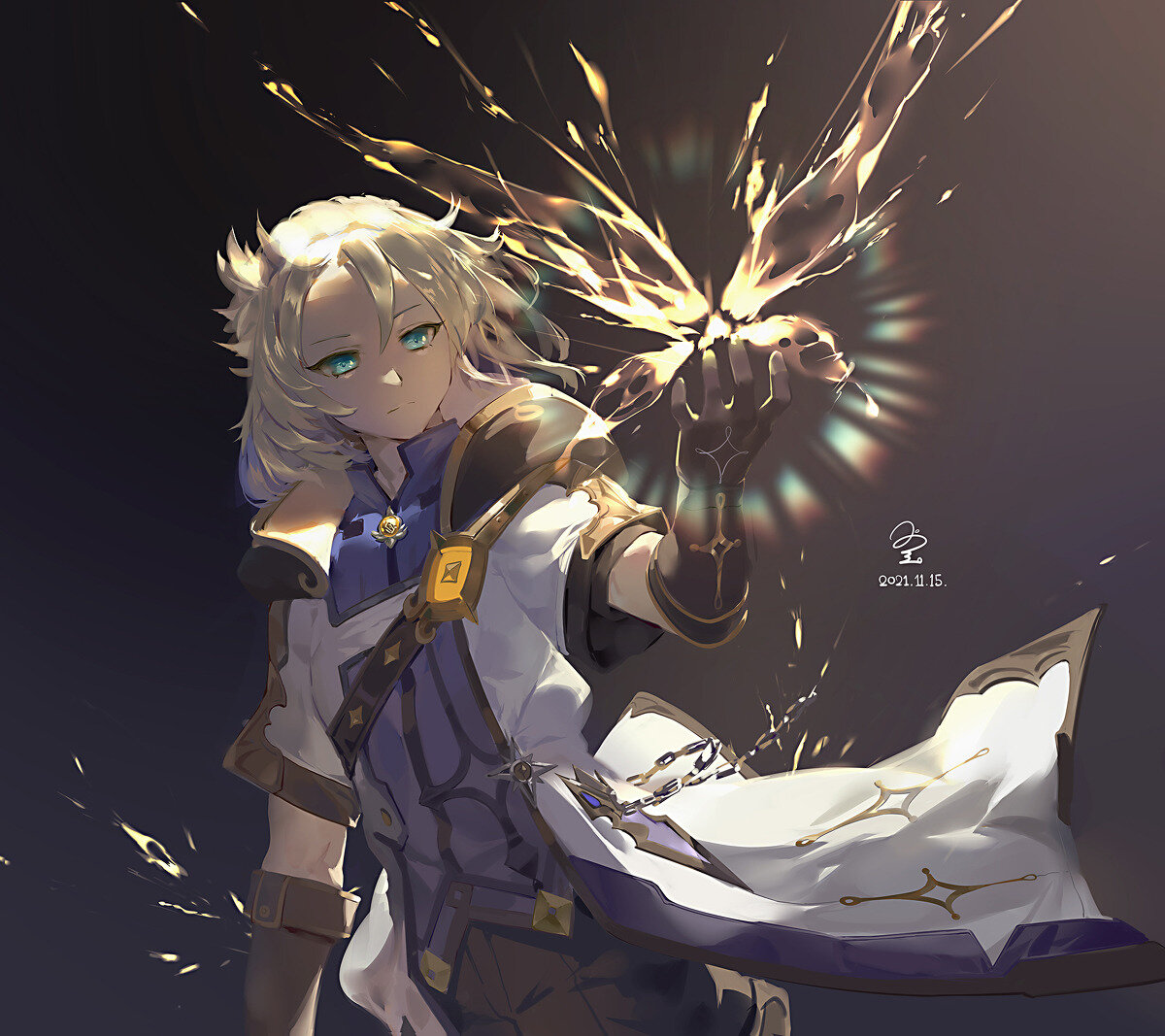 - О деталях и роде деятельности: Его особое блюдо — «Лесной сон». Стихия — Гео. Он занимает должность главного алхимика и капитана следственной группы Ордо Фавониус, а также является талантливым художником, проиллюстрировавшим книгу Син Цю.