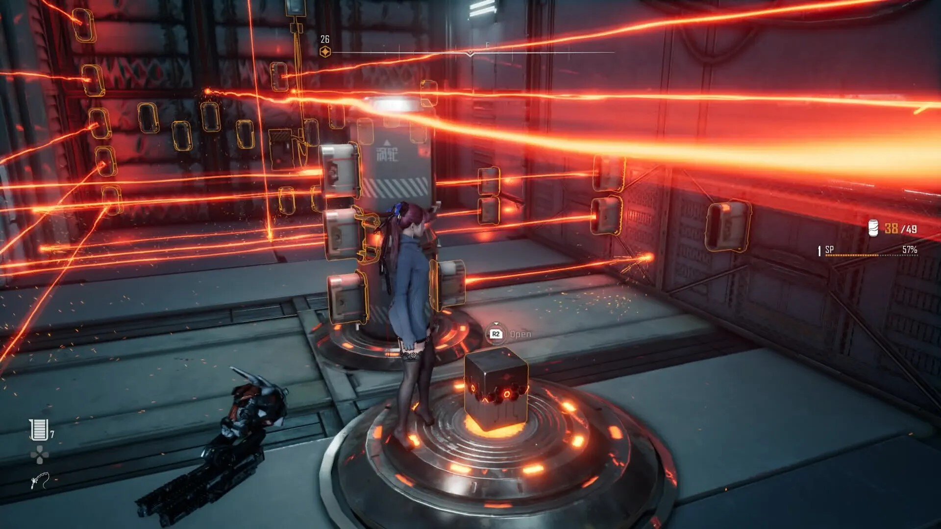 В начале локации «Шпиль 4» есть комната с лазерами. Внутри будет выключатель лазеров: нажмите на него и спокойно берите костюм.