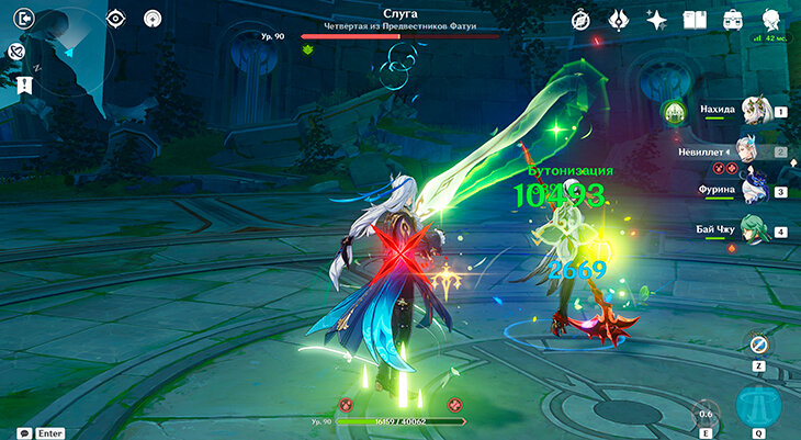 Если у вас есть герой со способностью отхиливаться самостоятельно, как Ризли или Невиллет, то это идеально для этого босс-файта – не нужно ждать кд или тик лечения, чтобы атаковать заряженной атакой и сбить ей комбинацию.