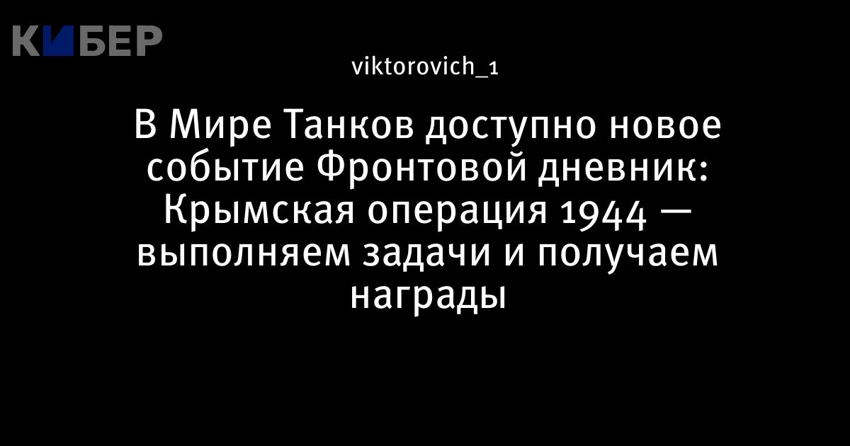 В Мире Танков доступно новое событие Фронтовой дневник: Крымская операция 1944 — выполняем задачи и получаем награды