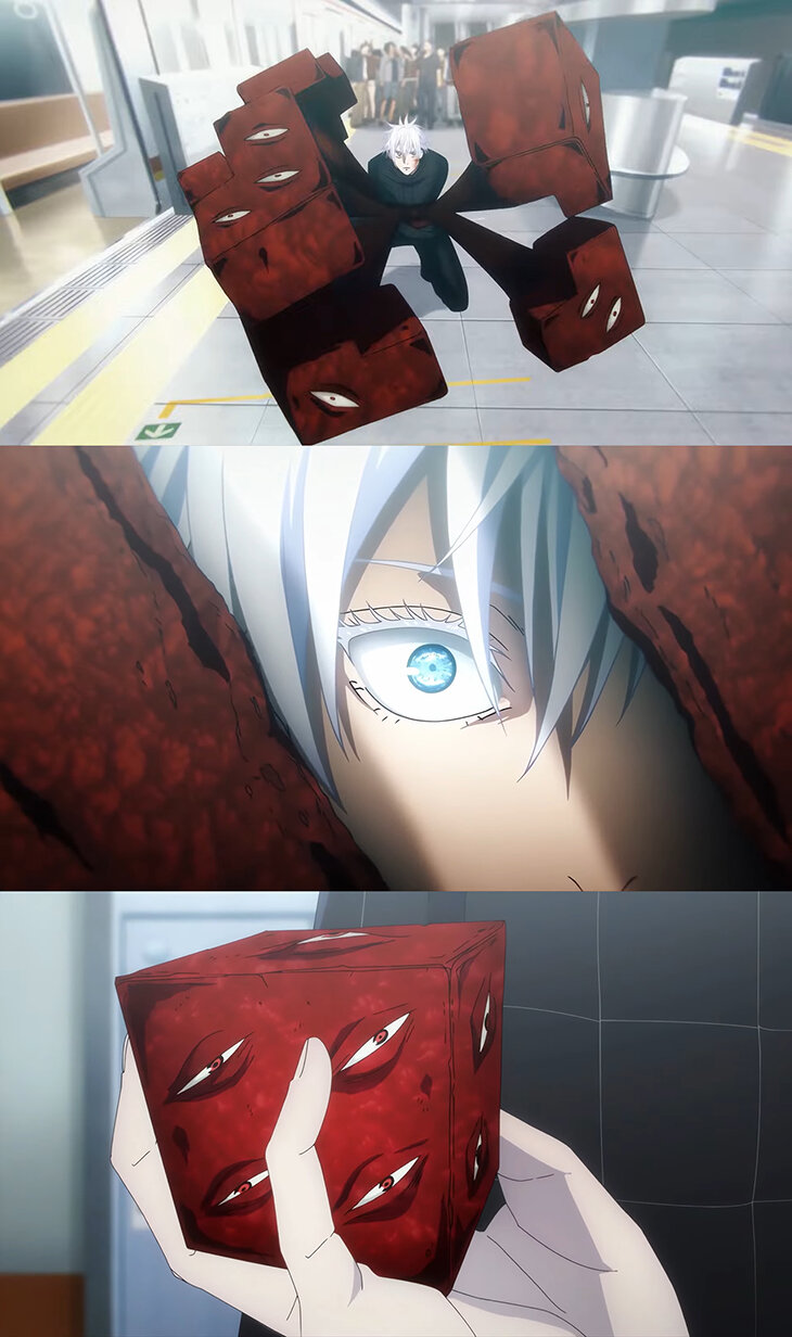 Во втором сезоне аниме «Магическая битва» наставник главных героев Сатору Годжо попадает в ловушку. Мимик вселился в тело его мертвого напарника и подстроил все так, чтобы Годжо не мешал антагонистам воплощать свой план, потому что только Сатору может их остановить. Его «тюрьмой» стал куб с глазами. Остальные герои вскоре узнали об этом и передавали друг другу новость той фразой, которая впоследствии и оказалась мемной.