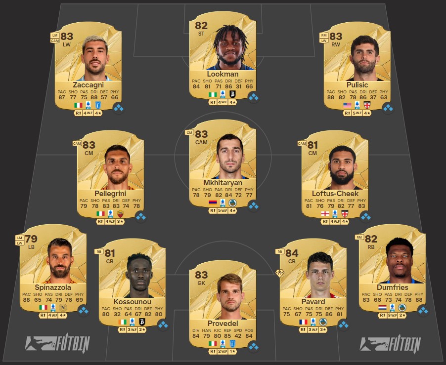 Серия A славится превосходными стартовыми полузащитниками, поэтому их выбор слишком субъективен. Предлагаем вариант с универсальным Лоренцо Пеллегрини из «Ромы», физически мощным Рубеном Лофтусом-Чиком из «Милана» и ярким Генрихом Мхитаряном из «Интера» с 5 звездами на слабой ноге. Обязательно примените армянину атакующий стиль «Охотник».
