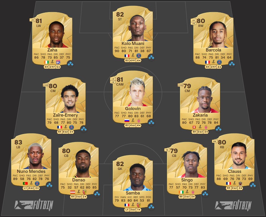 Лучший левый вингер – техничный Уилфрид Заа из «Лиона» с 5 скиллами финтов. Скорость ивуарийца просела с возрастом и нуждается в усилении. Справа по альтернативной позиции мы поставили Брэдли Барколя из «ПСЖ».