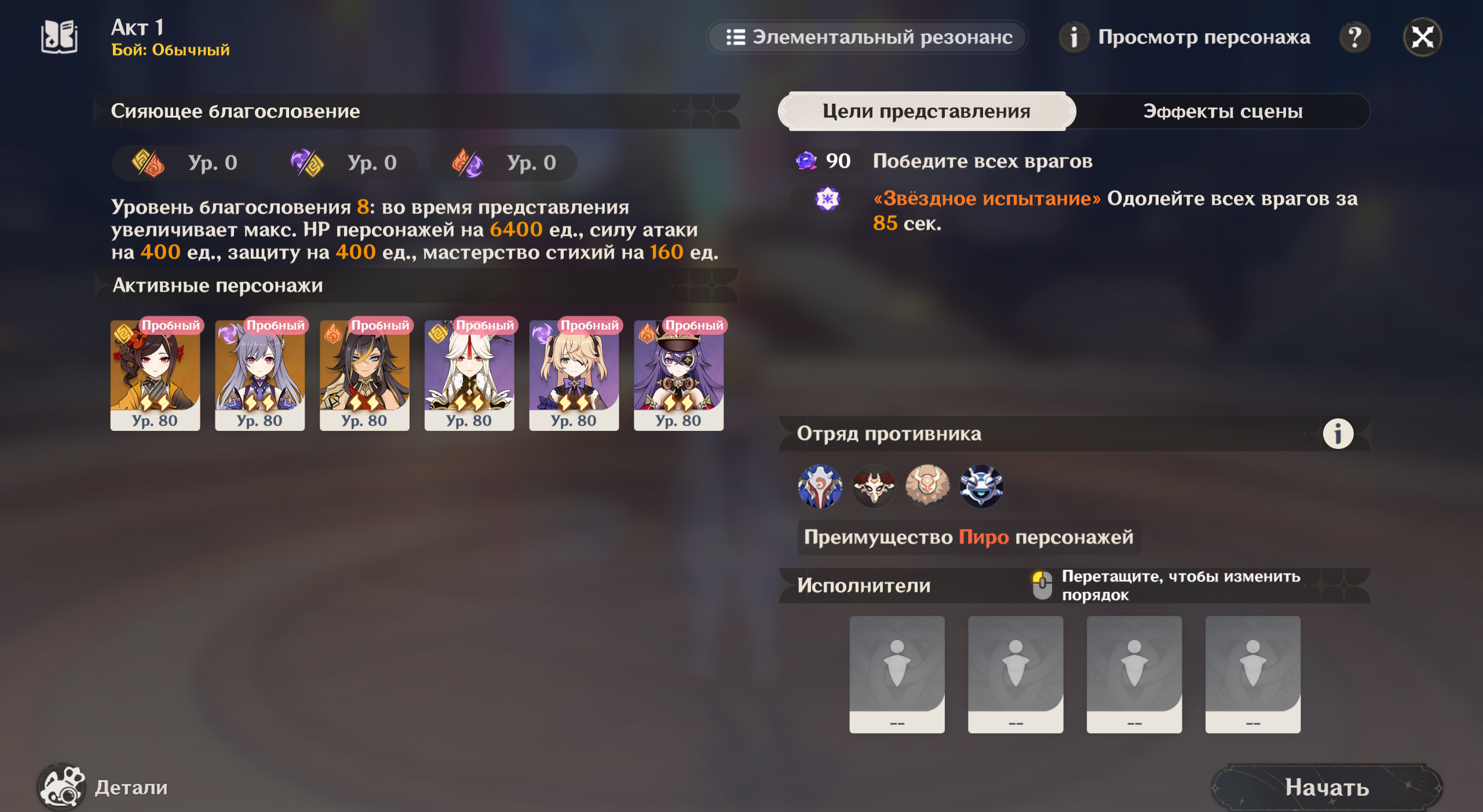 Примечание: только эти персонажи получают Фантастические благословения – постоянный бафф, действующий как в пределах Театра, так и в открытом мире. Усиление повышает максимальное HP, силу атаки и защиту на 20%.