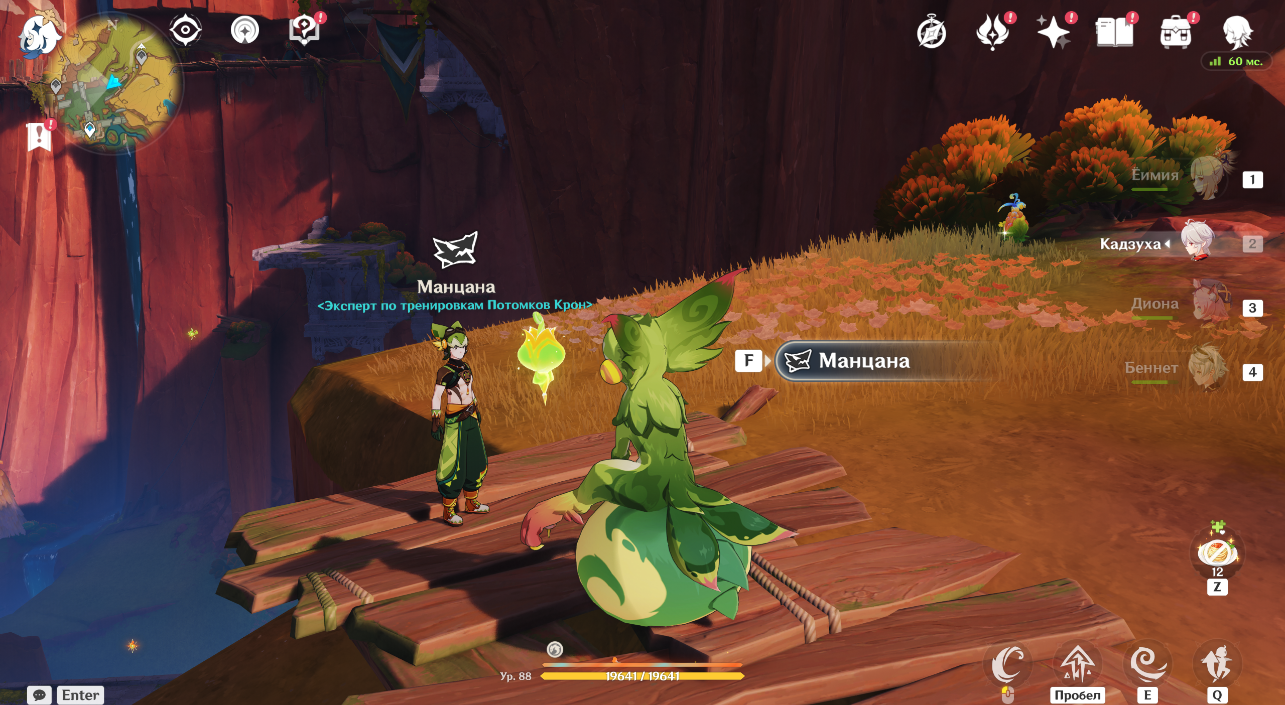 А еще после прохождения квеста на северо-востоке от Храма Предков появится НПС Манцана – один из экспертов по тренировкам Потомков Крон. У него можно пройти испытание воина за Юмказавра и получить обычный, богатый и драгоценный сундуки.