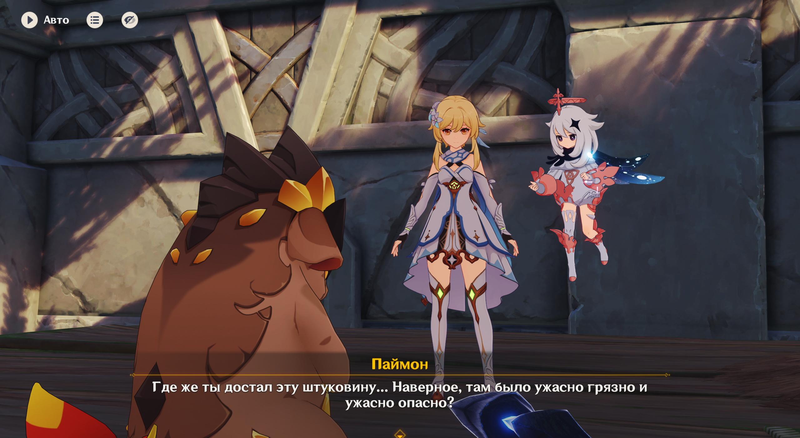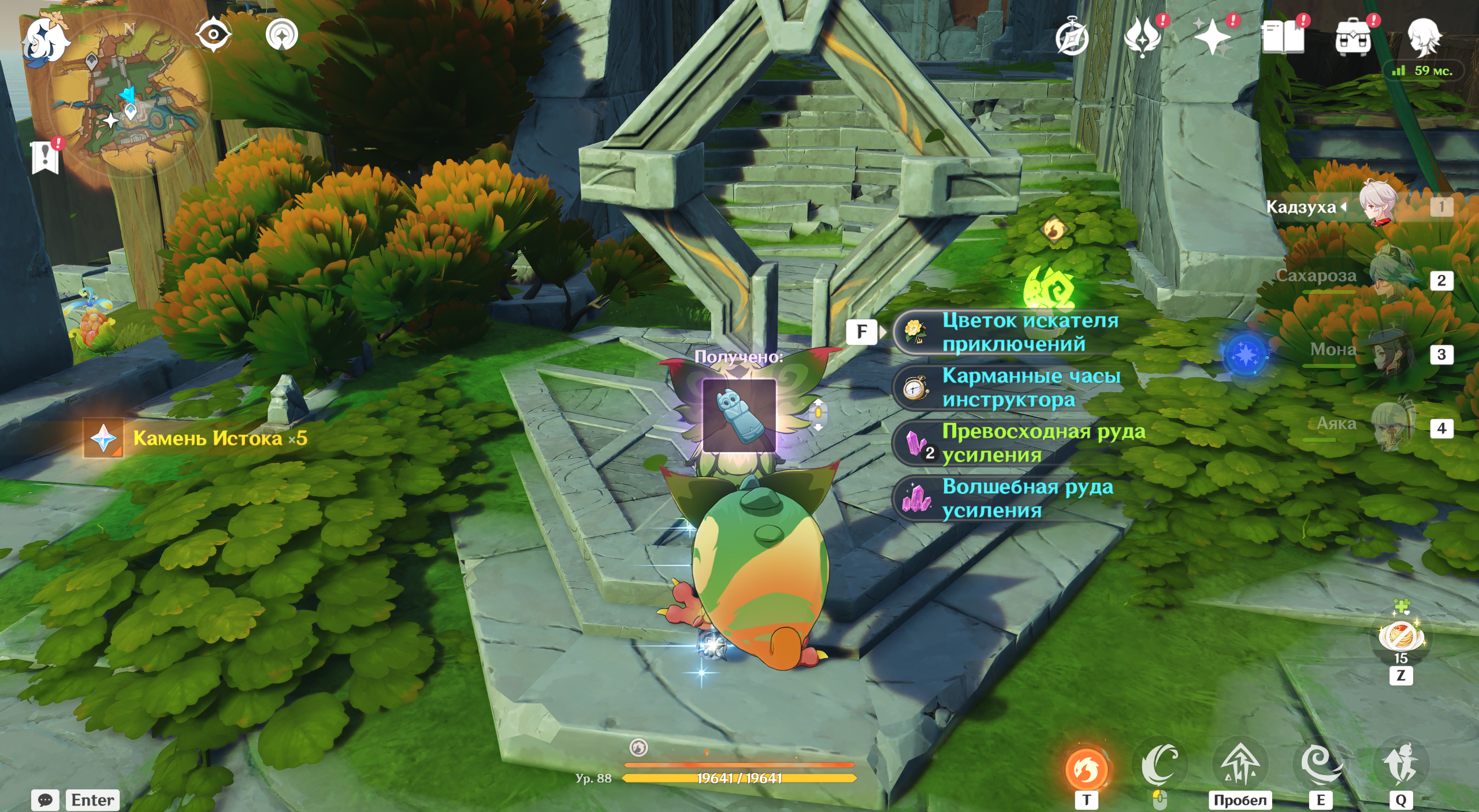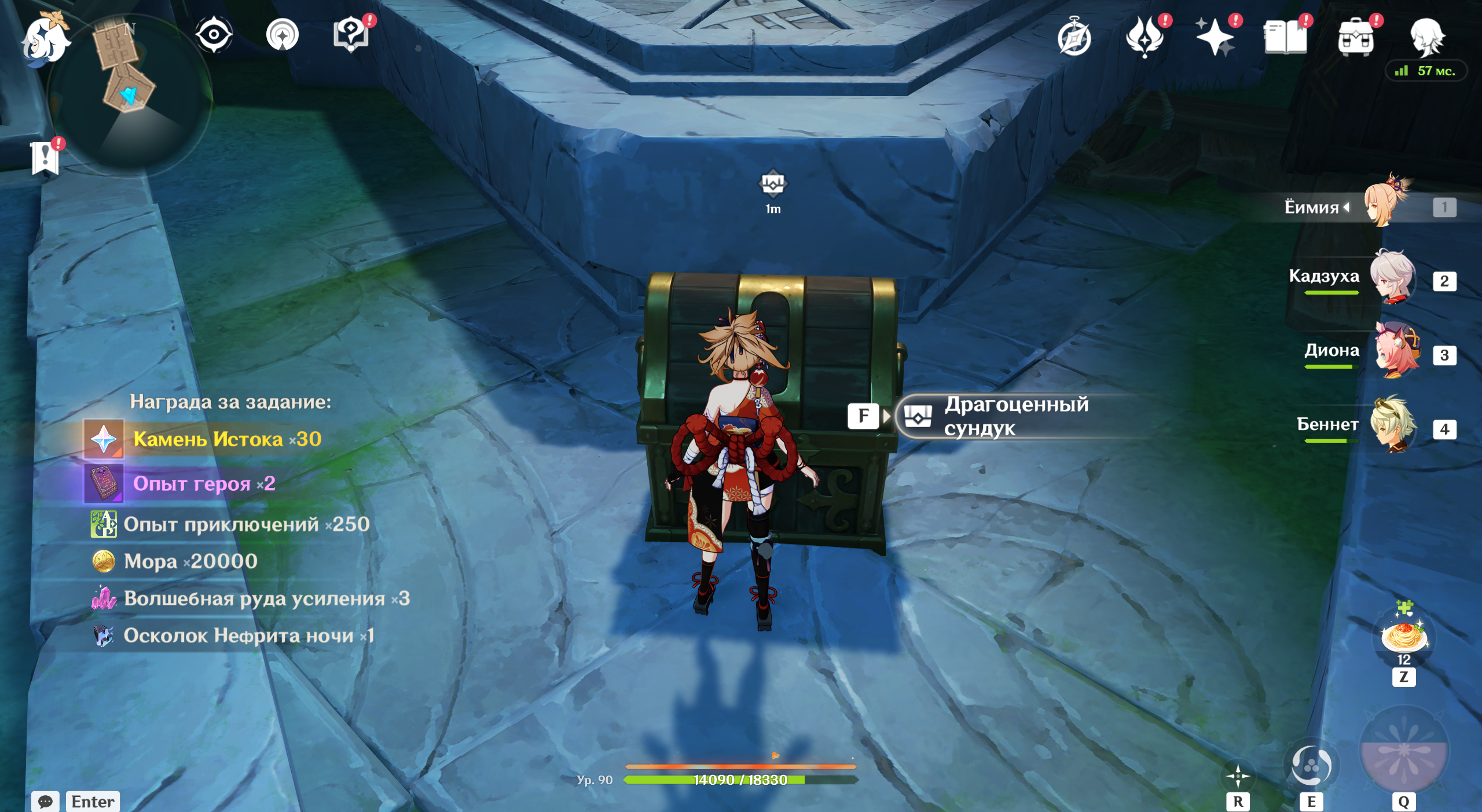 Появится богатый сундук, внутри которого найдете один ключевой камень. Его получение прокомментирует Паймон.