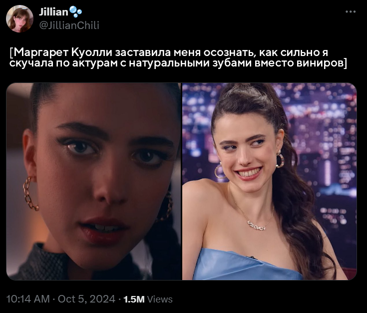 Пусть Маргарет Куолли и носила накладную грудь на съемках, зубы были настоящие: