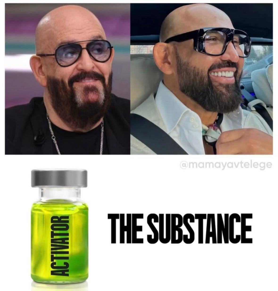 Самый популярный мем с «Субстанцией» – сравнение двух картинок с подписью «Вы когда-нибудь мечтали стать лучшей версией себя?». Это фраза из начала фильма и трейлера: Элизабет смотрит видео с флешки, где рассказывается про экспериментальный препарат.