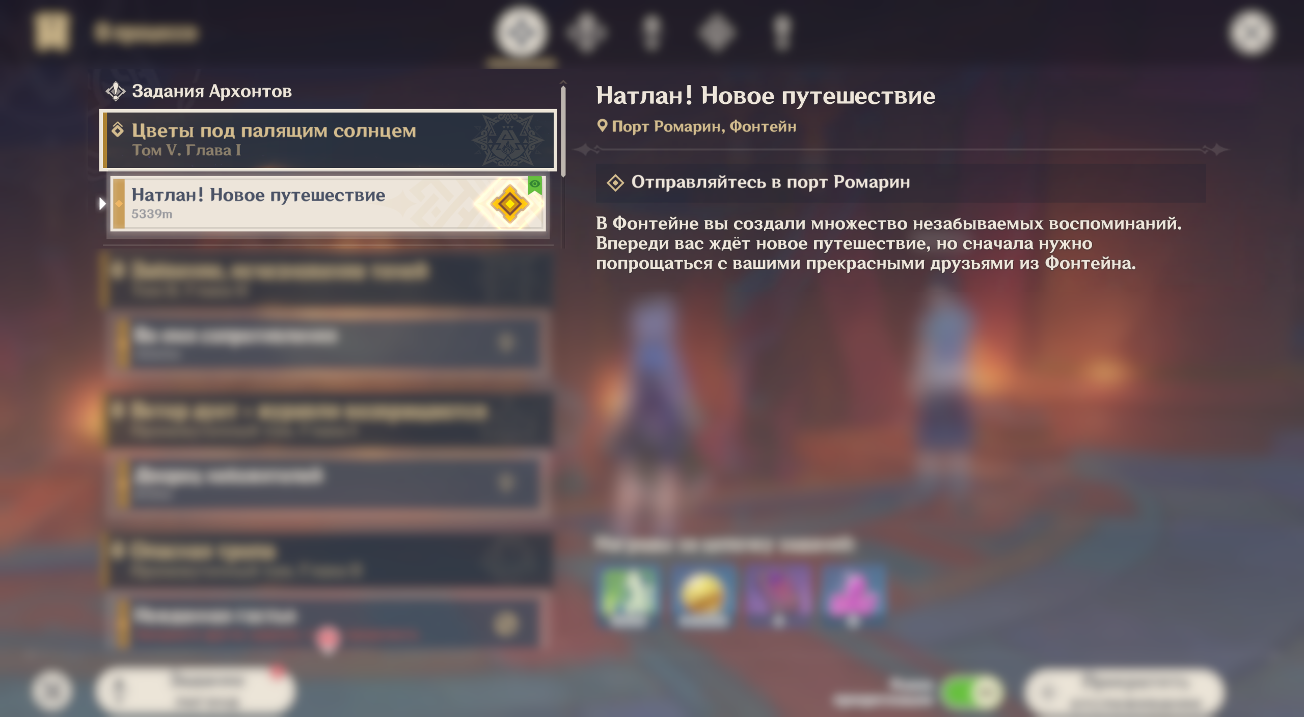 - После прохождения 1-й главы 5-го тома заданий Архонтов «Цветы под палящим солнцем».