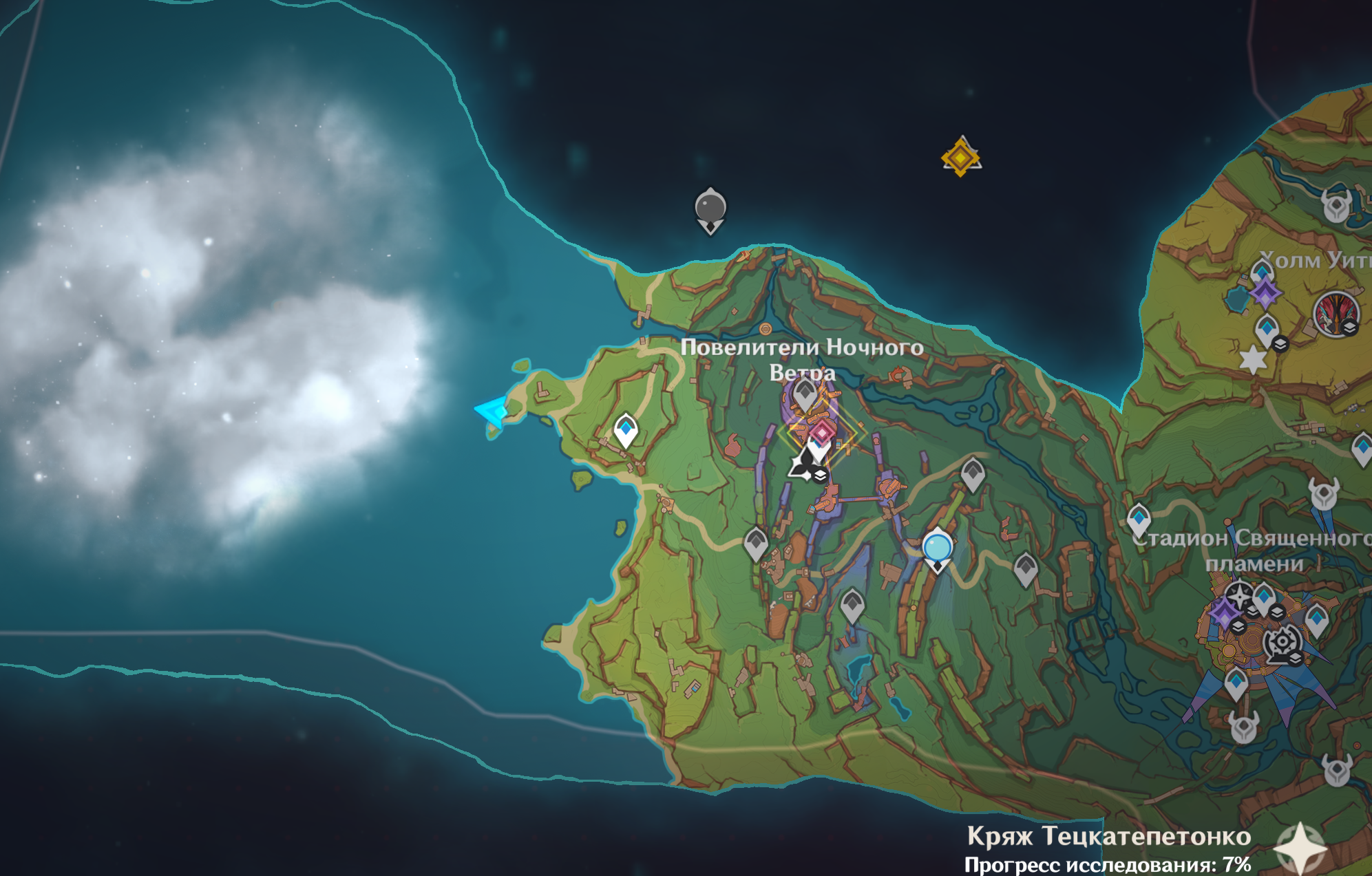 Локация располагается на северо-западе от клана Повелителей Ночного Ветра. Вы увидите туманный остров после активации ближайшей Статуи семи Архонтов.