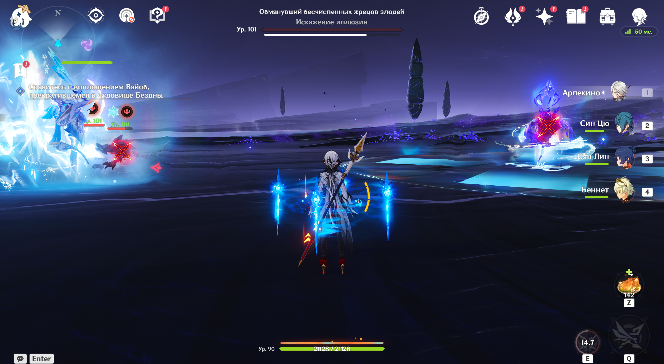 Вы имеете дело с Крио версией Воплощения Вайоб, поэтому лучше применяйте в бою Пиро и/или Электро персонажей. Враг может атаковать по площади и призывать Волков разрыва – не лишней будет помощь хилера.