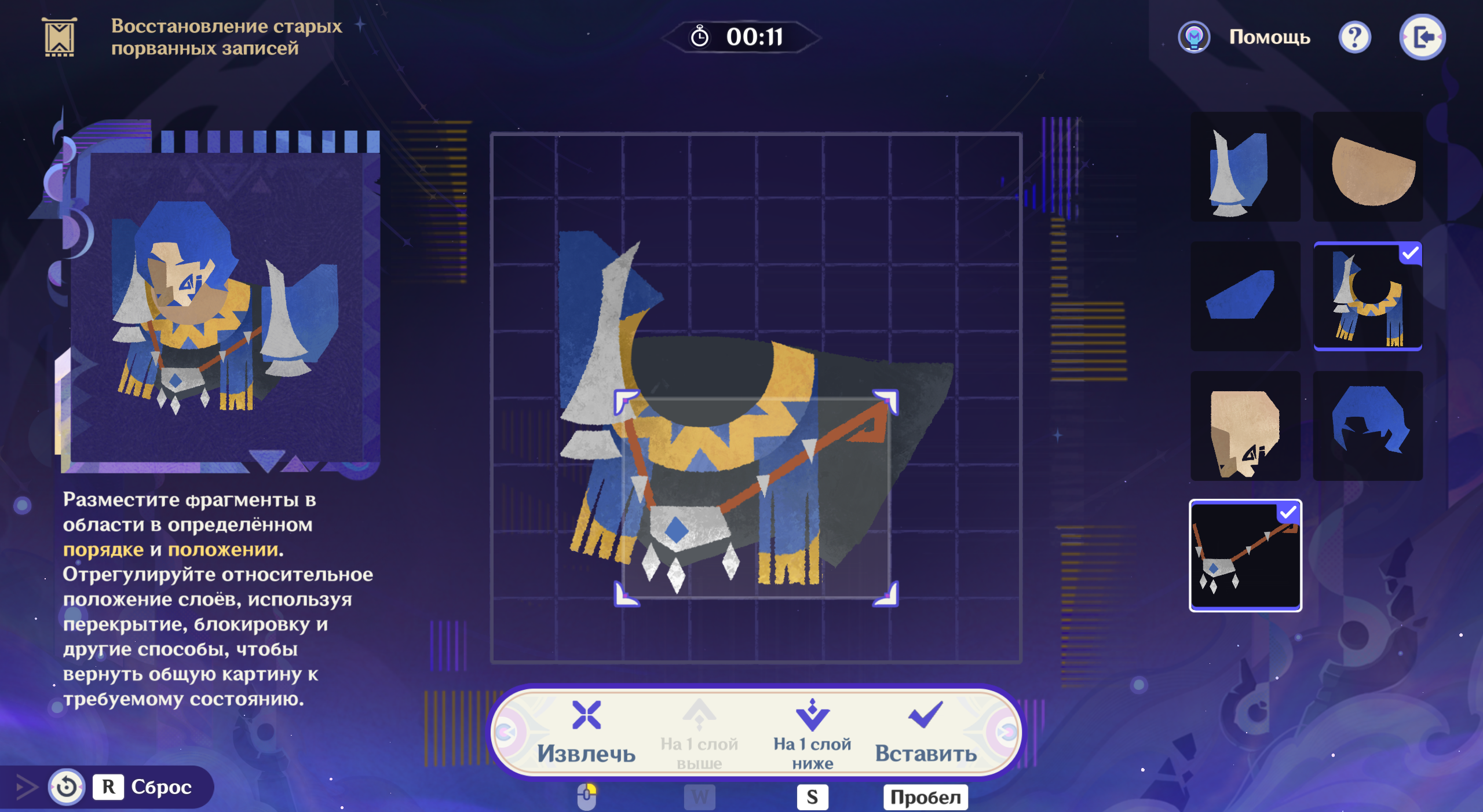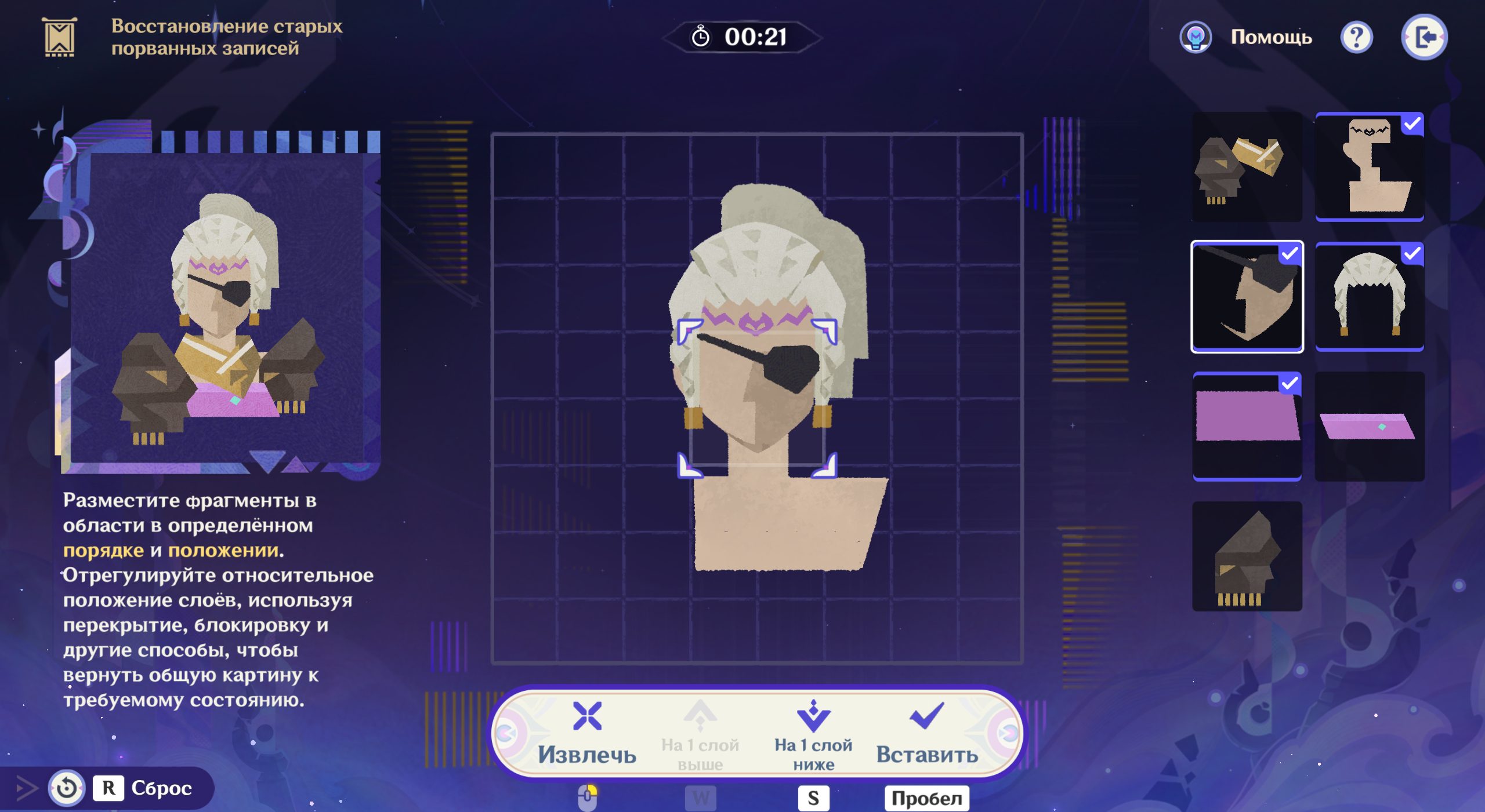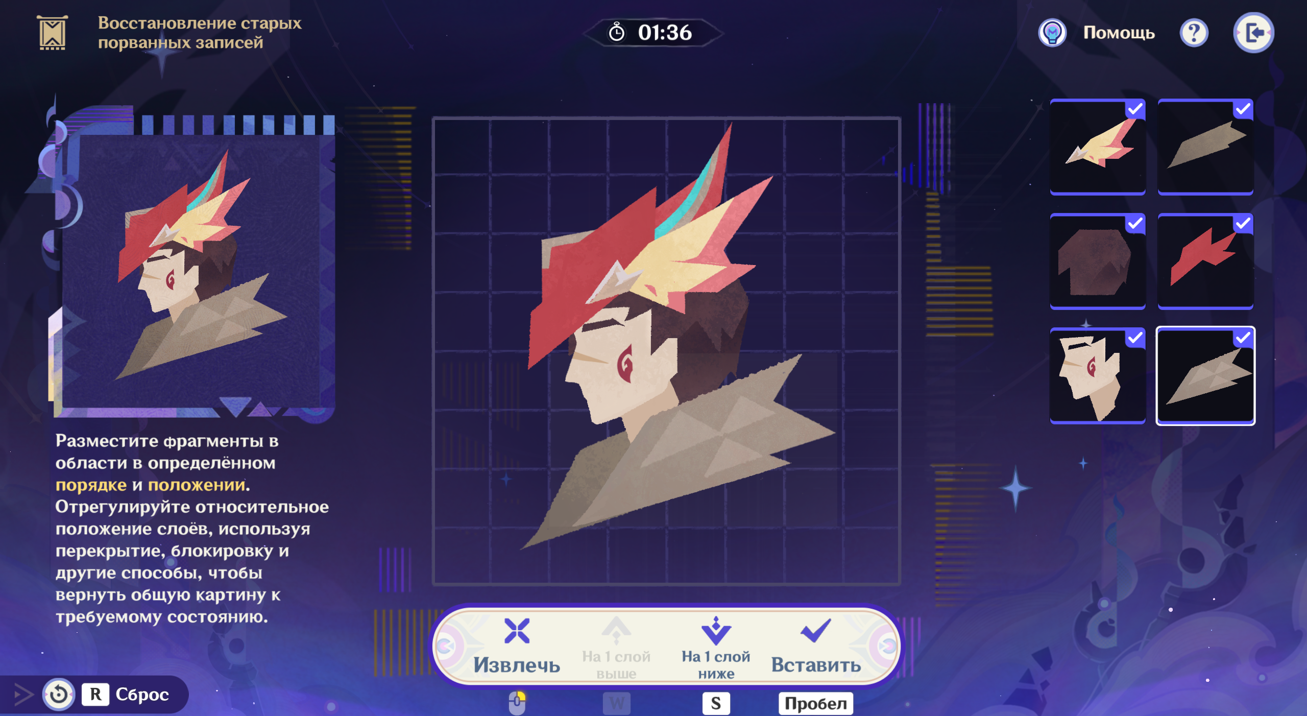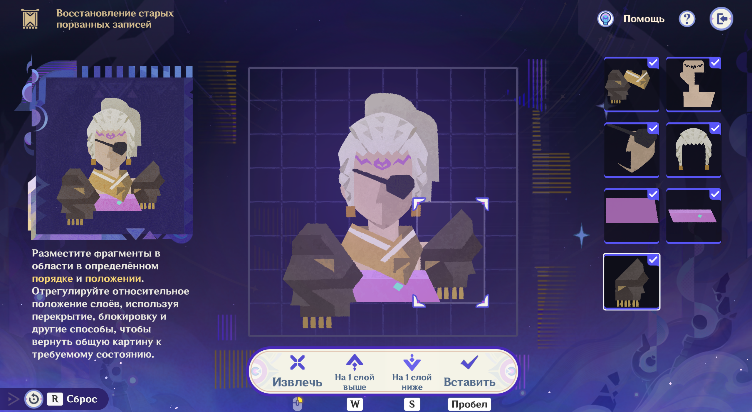 Уровень представляет собой пазл. Вы можете перемещать его кусочки и регулировать слои.