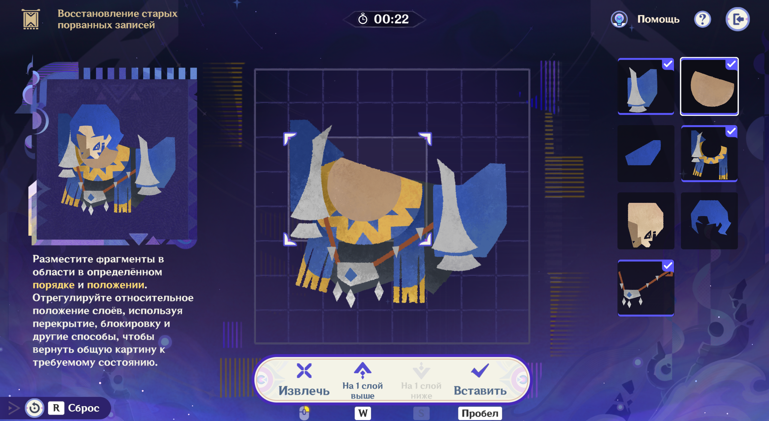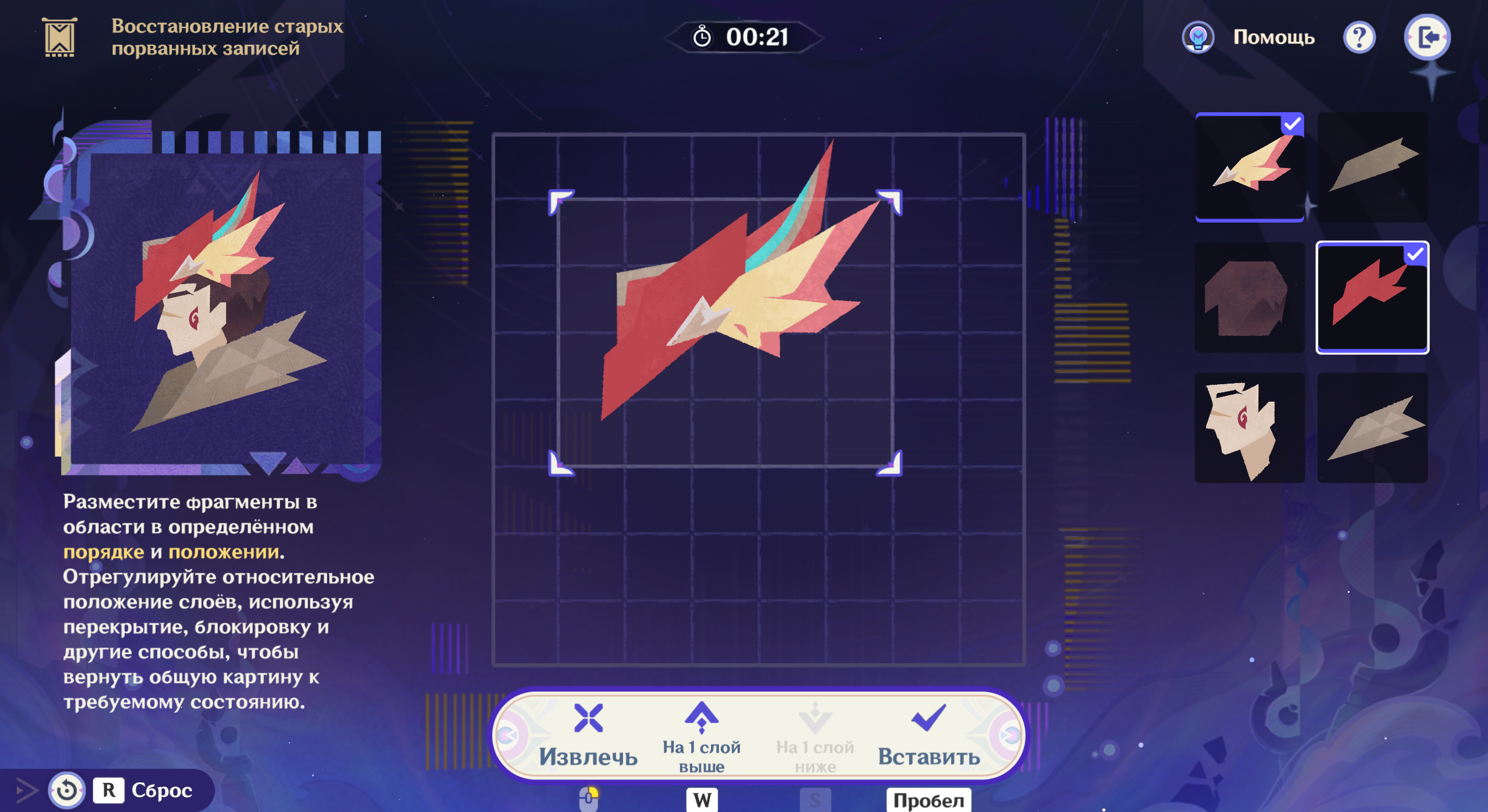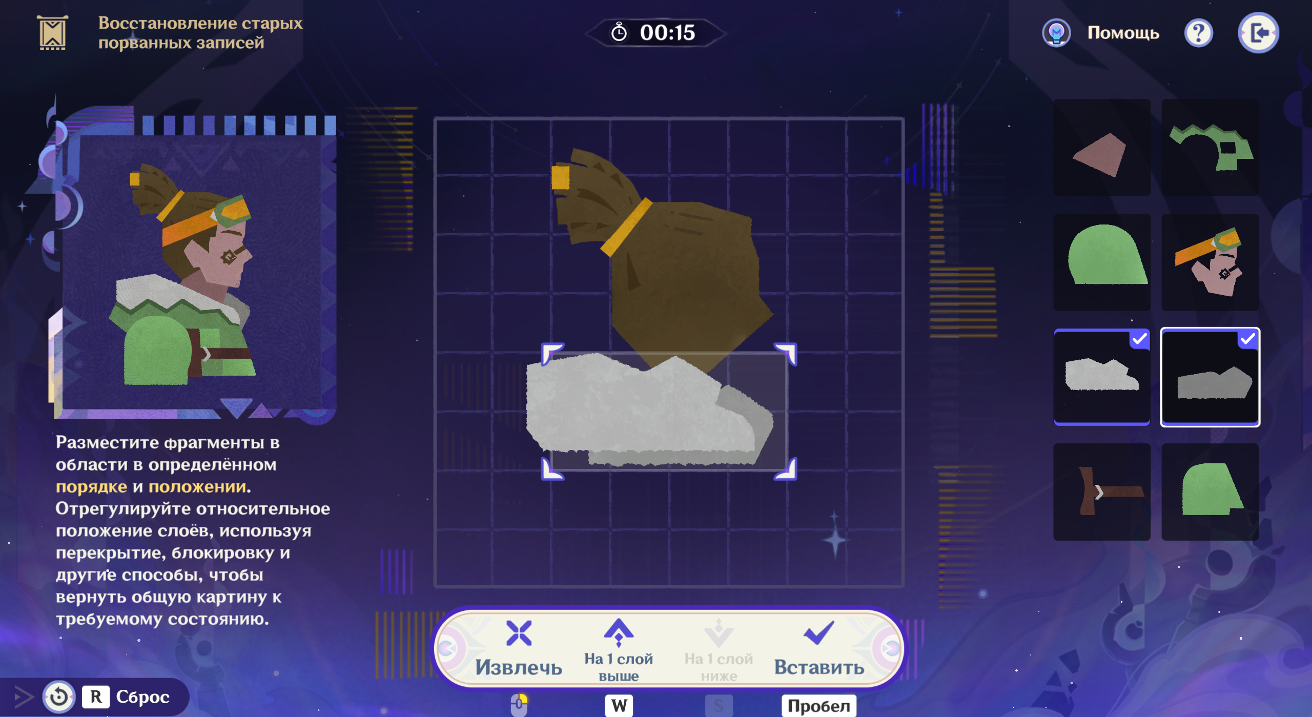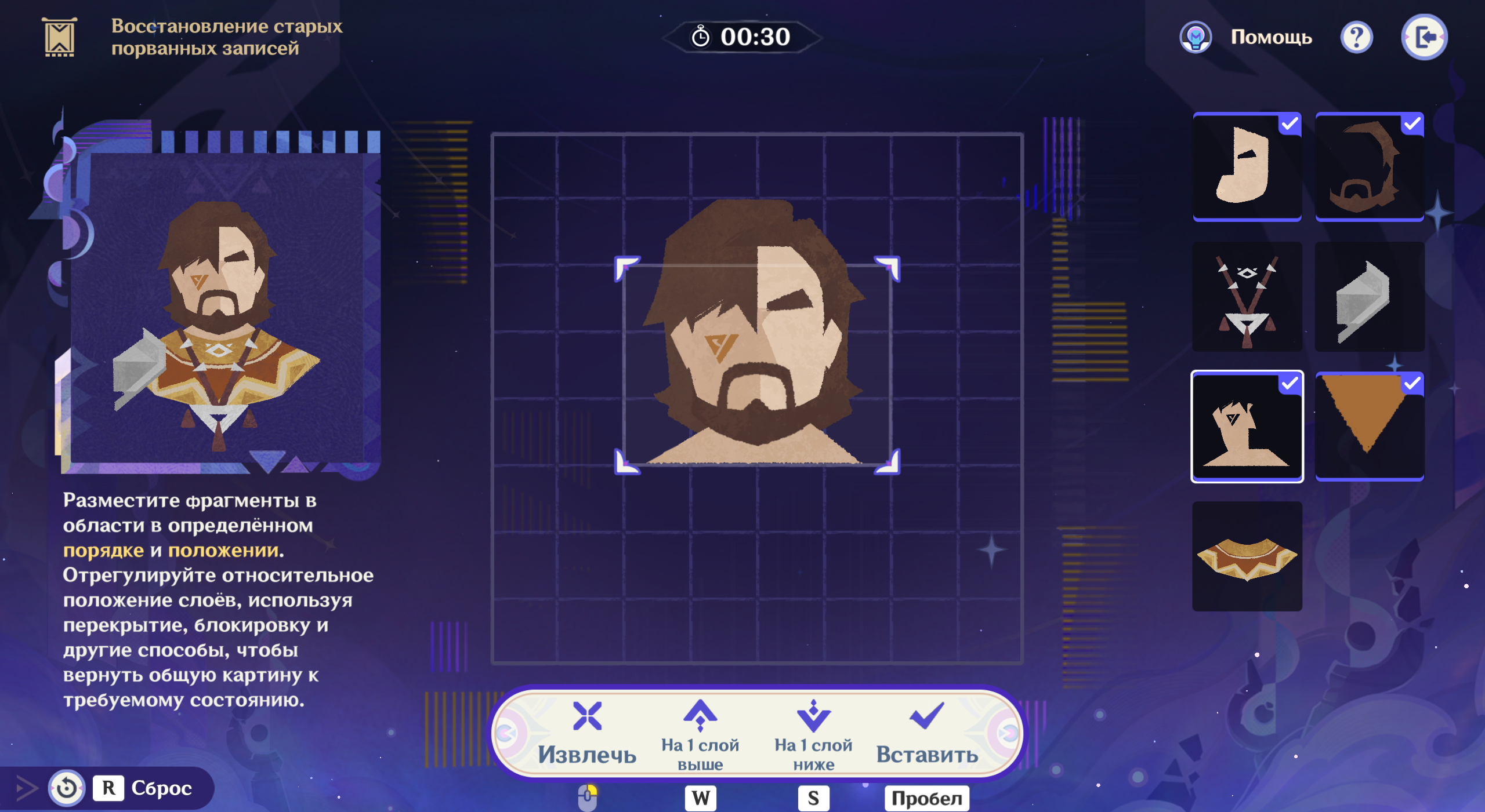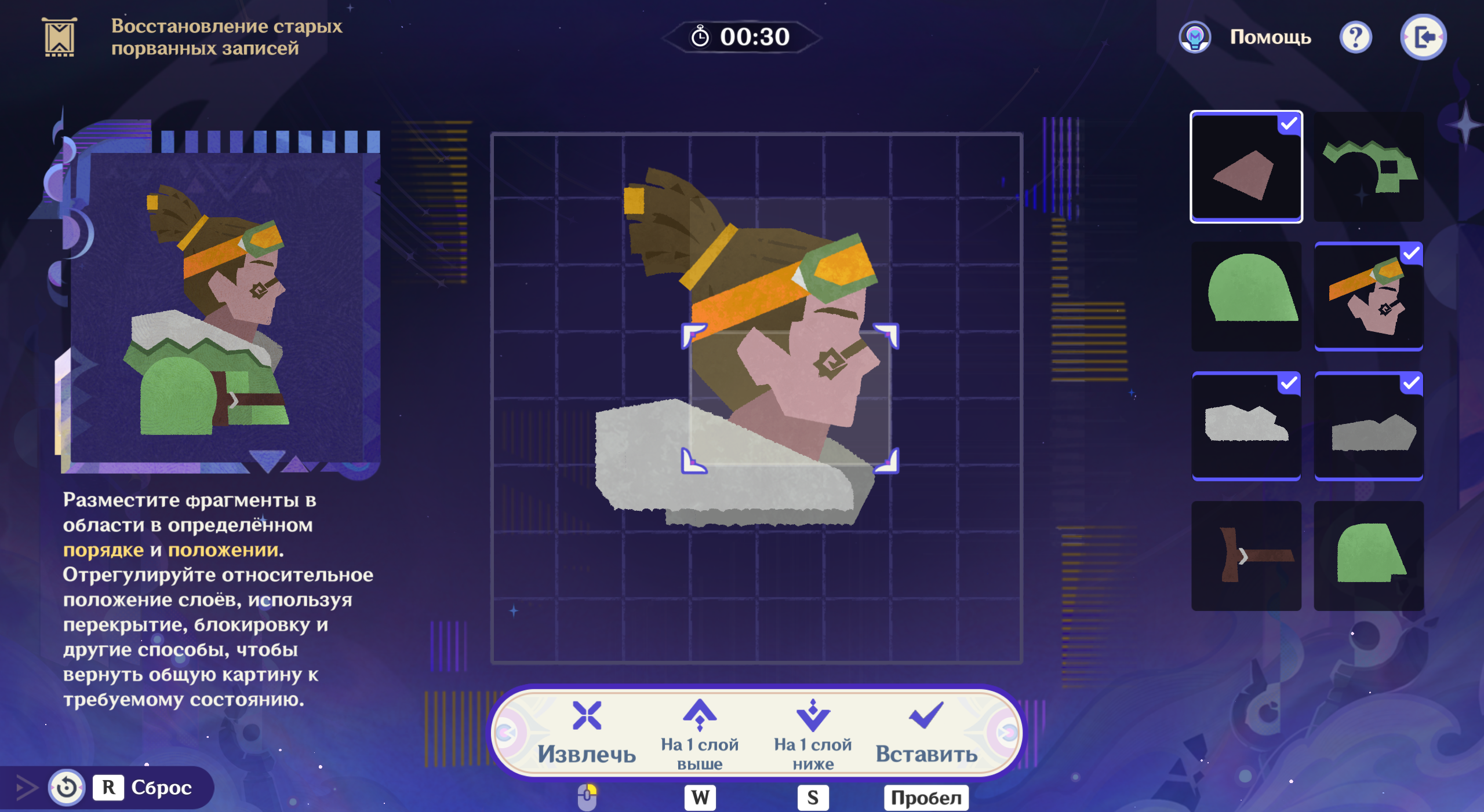 Уровень представляет собой пазл. Вы можете перемещать его кусочки и регулировать слои.