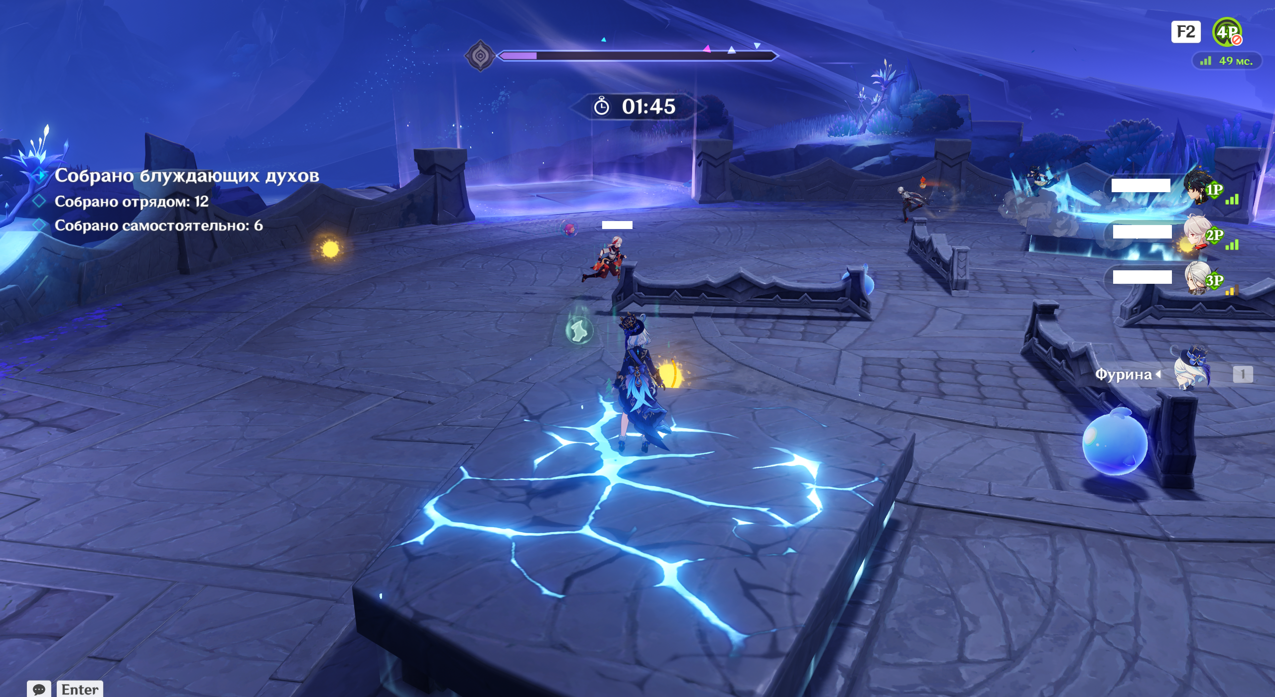 В вашем распоряжении будет небольшая арена с разбросанными по ней баффами, а условия каждого этапа различны. Собирайте баффы, чтобы заполнялась шкала в верхней части экрана – таким образом духи начнут притягиваться к вашему персонажу.