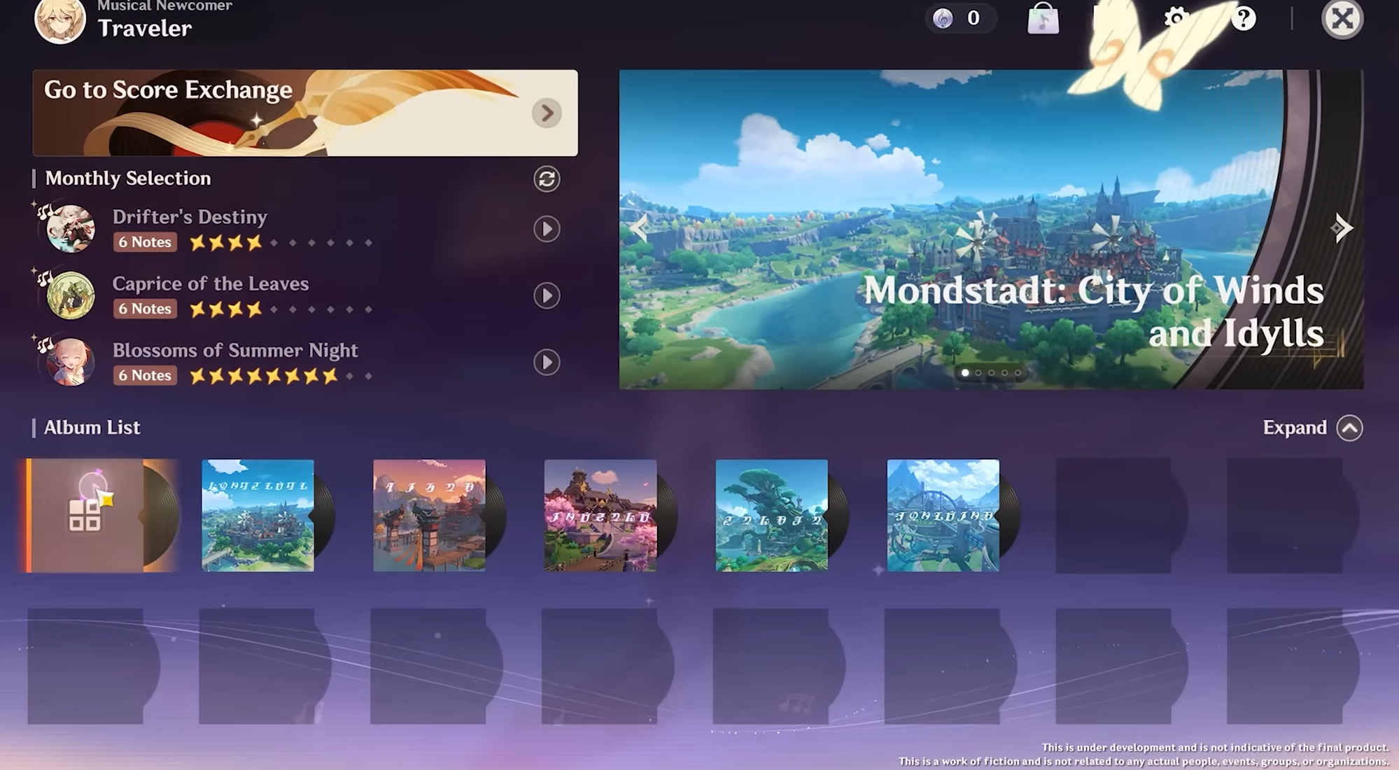 «Репертуар мириад мелодий» – режим, позволяющий воспроизводить музыкальные темы в ритм-игре. Ранее его вводили в качестве временного ивента, но теперь он останется в игре (подобно «Священному призыву семерых»). В патче 5.3 открыты музыкальные альбомы Мондштадта, Ли Юэ, Инадзумы, Сумеру и Фонтейна.