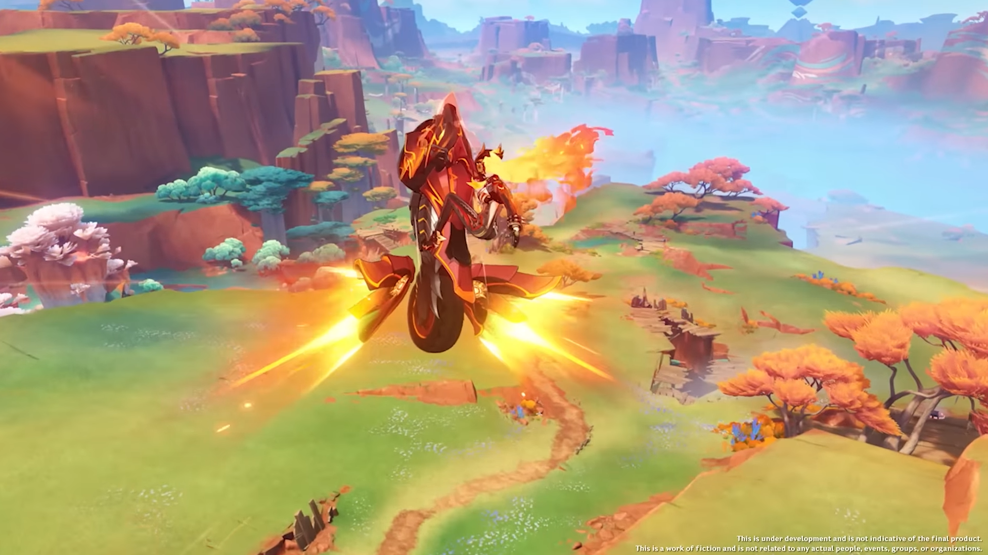 Ее мотоцикл – универсальный транспорт, вобравший в себя механики предыдущих персонажей Натлана: полет, передвижение по скалам и воде.