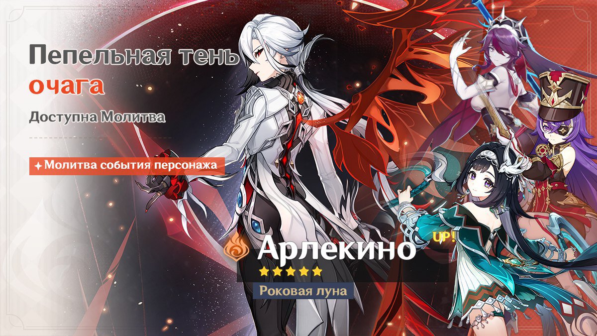 ● 5⭐ очертания алой луны – копье, сигнатурка Арлекино;