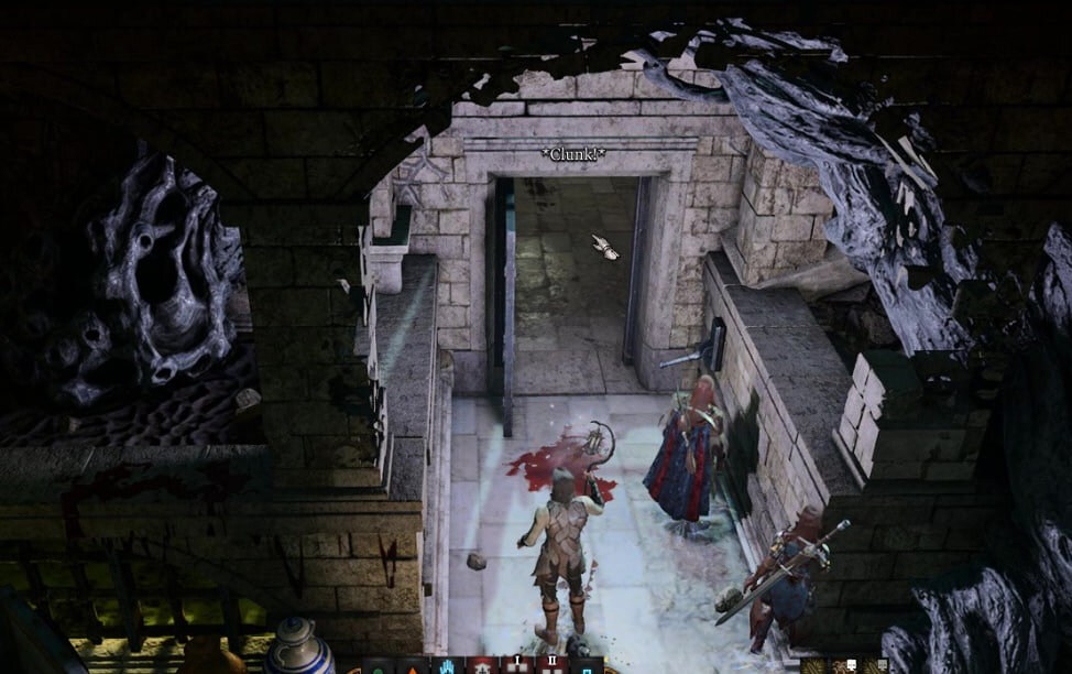 Как только вы официально войдете в морг, склеп окажется наполнен ядовитым газом. Отключить газ довольно просто – нужно найти ящики и горшки, разбросанные по полу, и передвинуть их на вентиляционные отверстия в земле. Также можно использовать навык обезвреживания ловушек. В ядовитых облаках скрываются зомби. Яд требует спасброска по Телосложению. Рекомендуется отправить персонажа с самым высоким Телосложением или самого выносливого члена группы в ядовитые облака, чтобы он закрыл все вентиляционные отверстия.