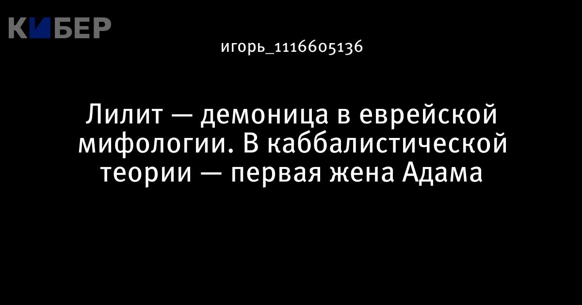 Лилит — демоница в еврейской мифологии. В каббалистической теории — первая жена Адама