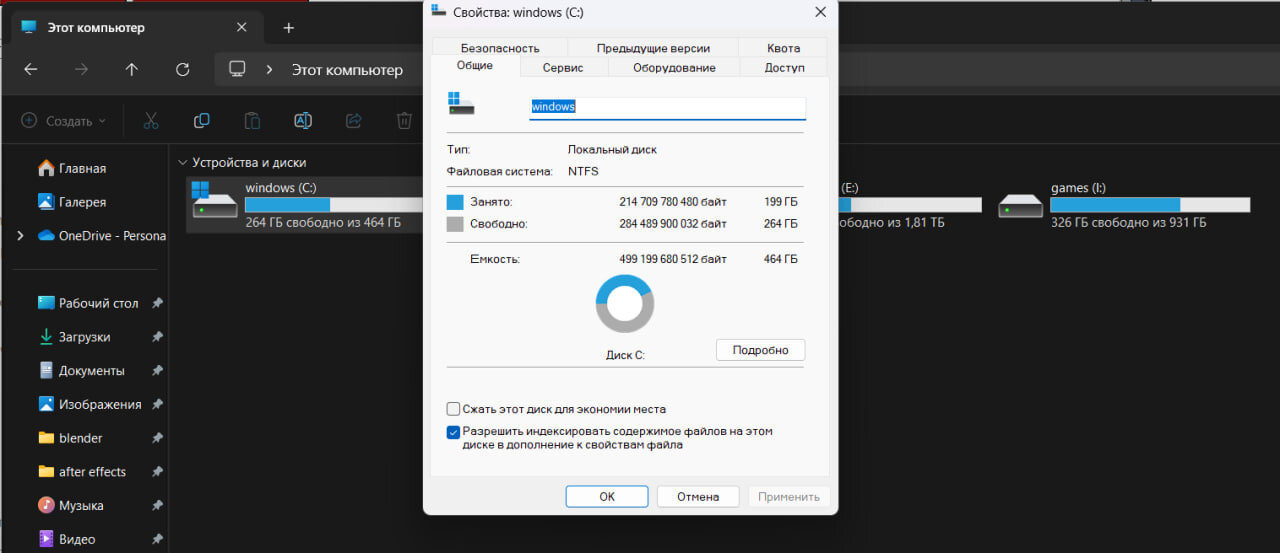 На Windows 11 интерфейс немного отличается – вместо «Очистки диска» написано «Подробно».