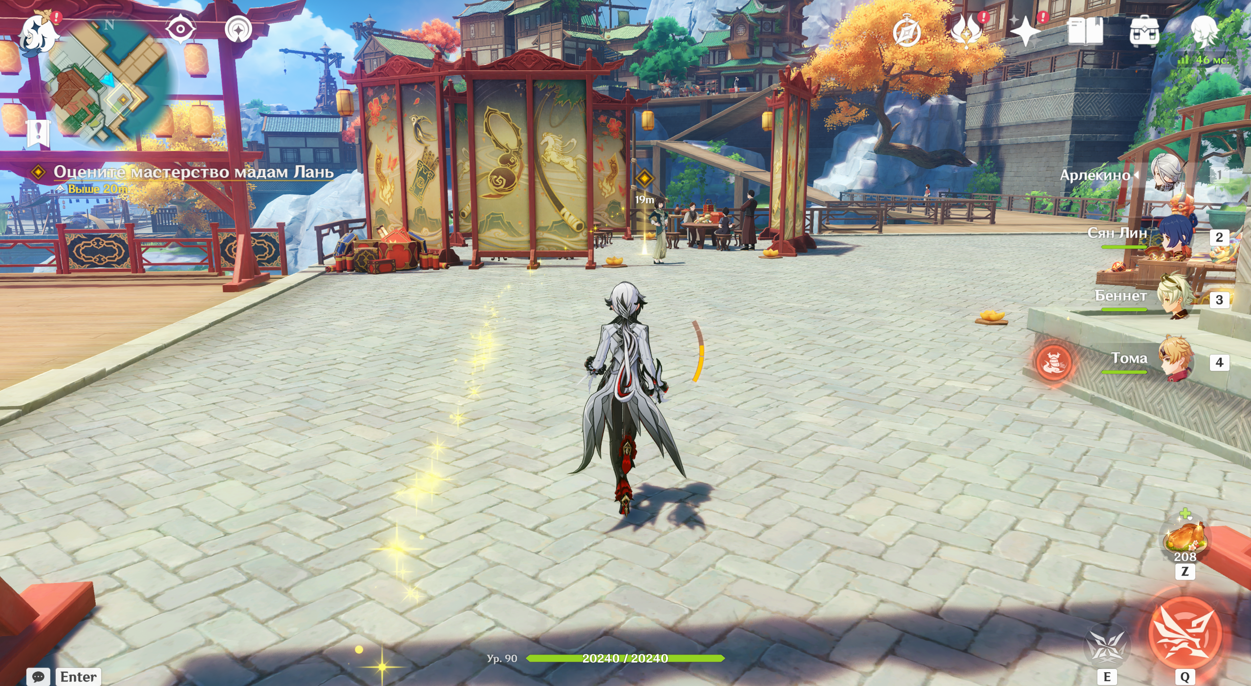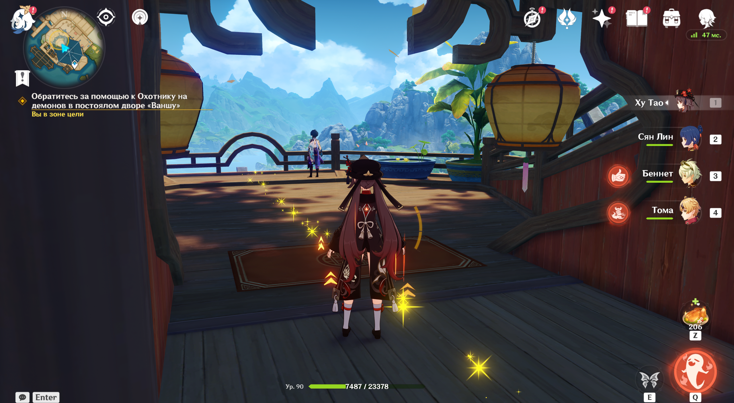 Переместитесь в Ли Юэ, где наткнетесь на задумчивую Ху Тао. Она сообщит, что переживает из-за трудностей на работе. После разговора она удалится по делам. Прогуляйтесь по гавани и изучите Праздник морских фонарей.