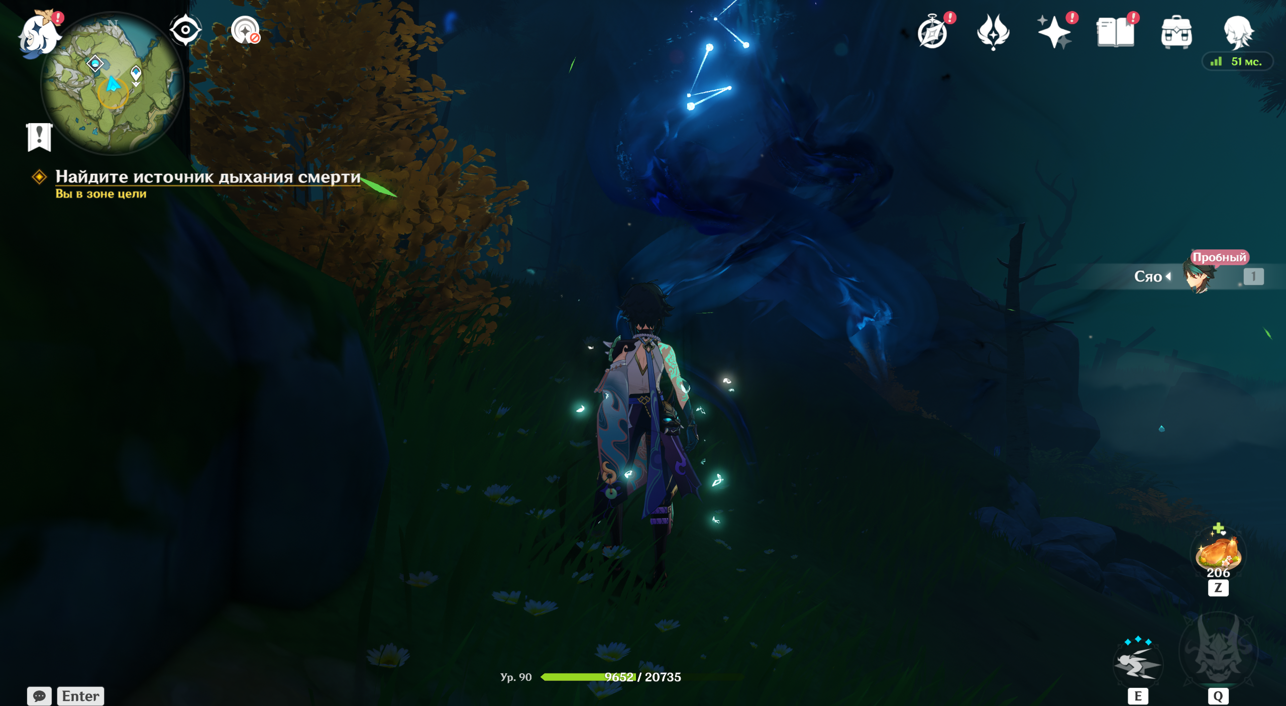 При игре за Сяо внимательно рассмотрите округу, чтобы обнаружить несколько клубков дыхания смерти. Избавьтесь от них и появившихся монстров. Разблокируется проход в потусторонний мир.