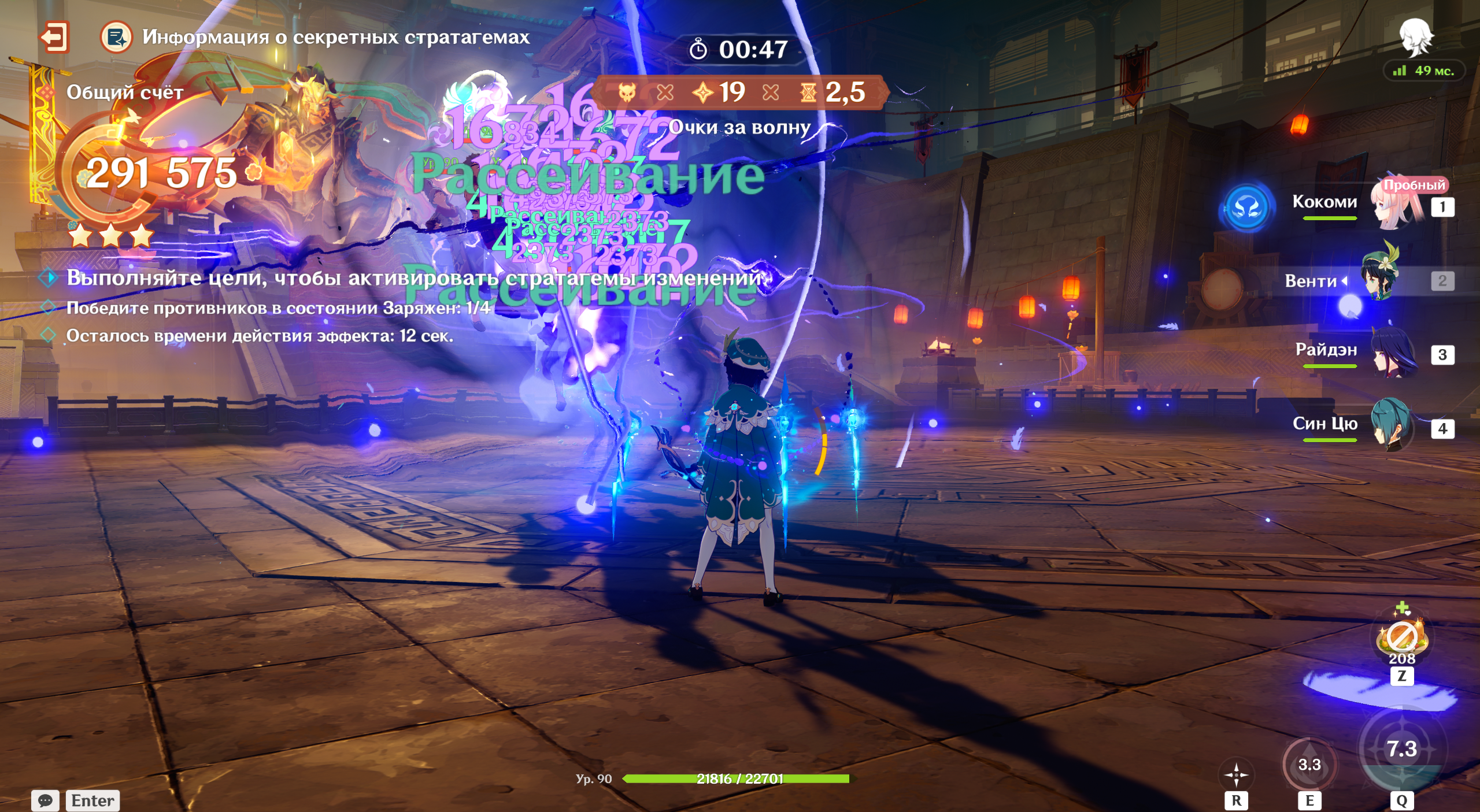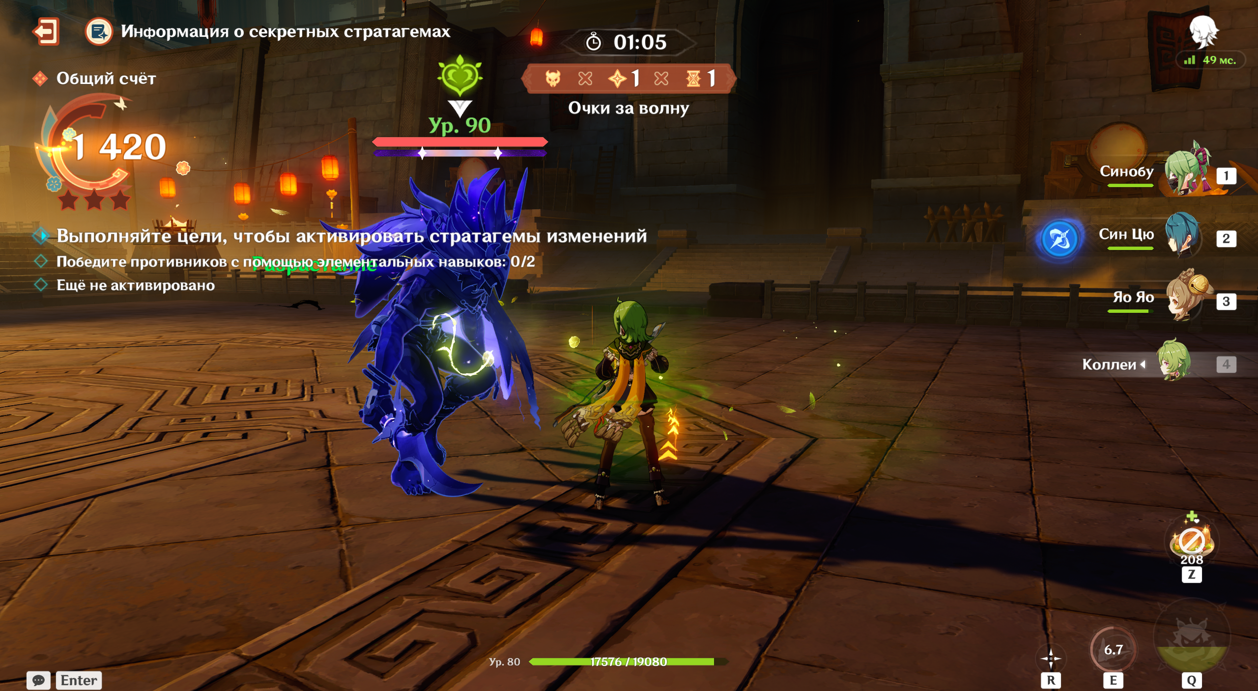 На уровне много мелких противников, стяжка не будет лишней. Сочетание Гидро с Венти и Райдэн особенно эффективно из-за постоянного наложения статуса.