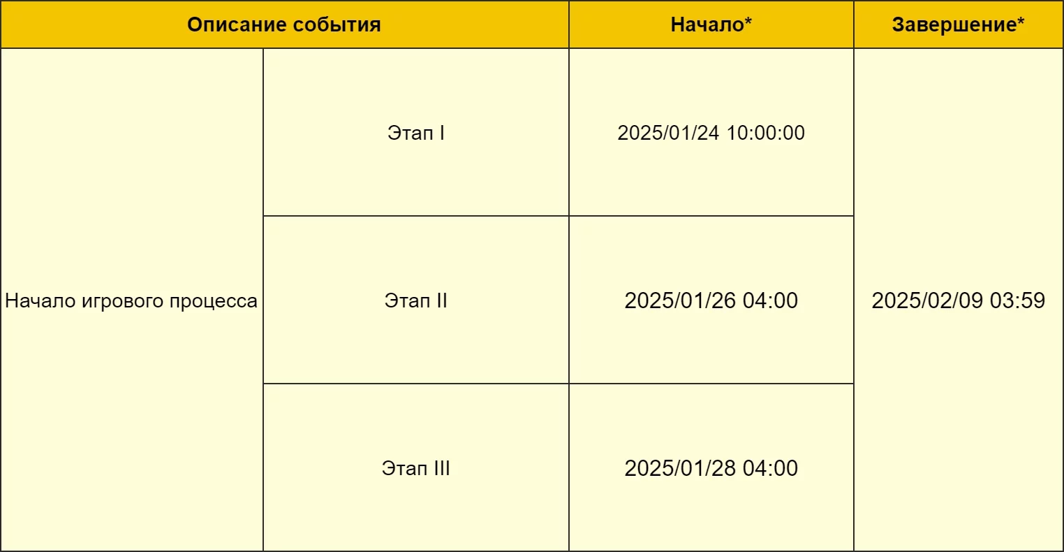 Период действия: с 24 января и до 9 февраля 2025 года.