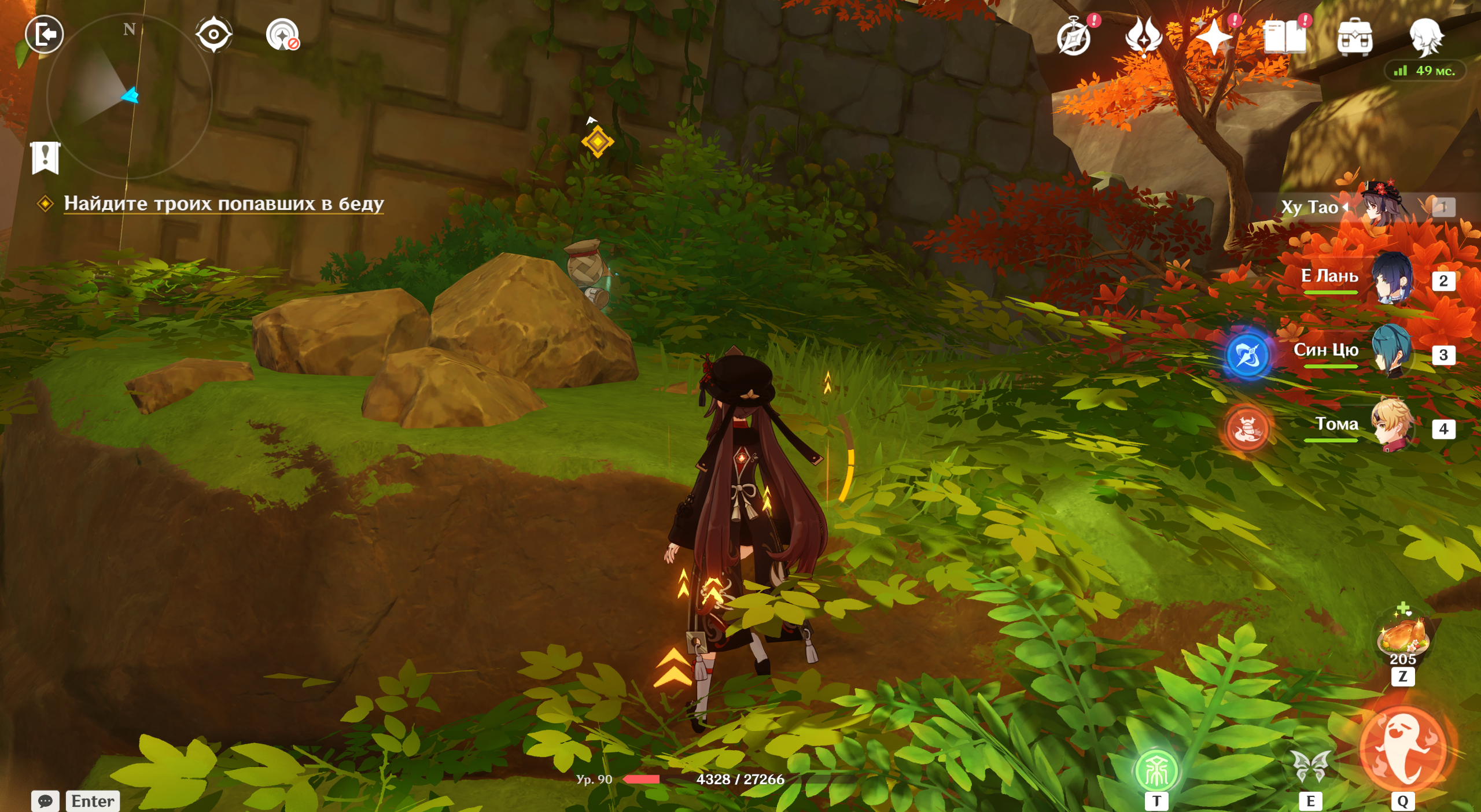 Телепортируйтесь на склон Уван. Из ниоткуда появятся хиличурлы. Избавьтесь от них и поговорите с прибывшей Е Лань.
