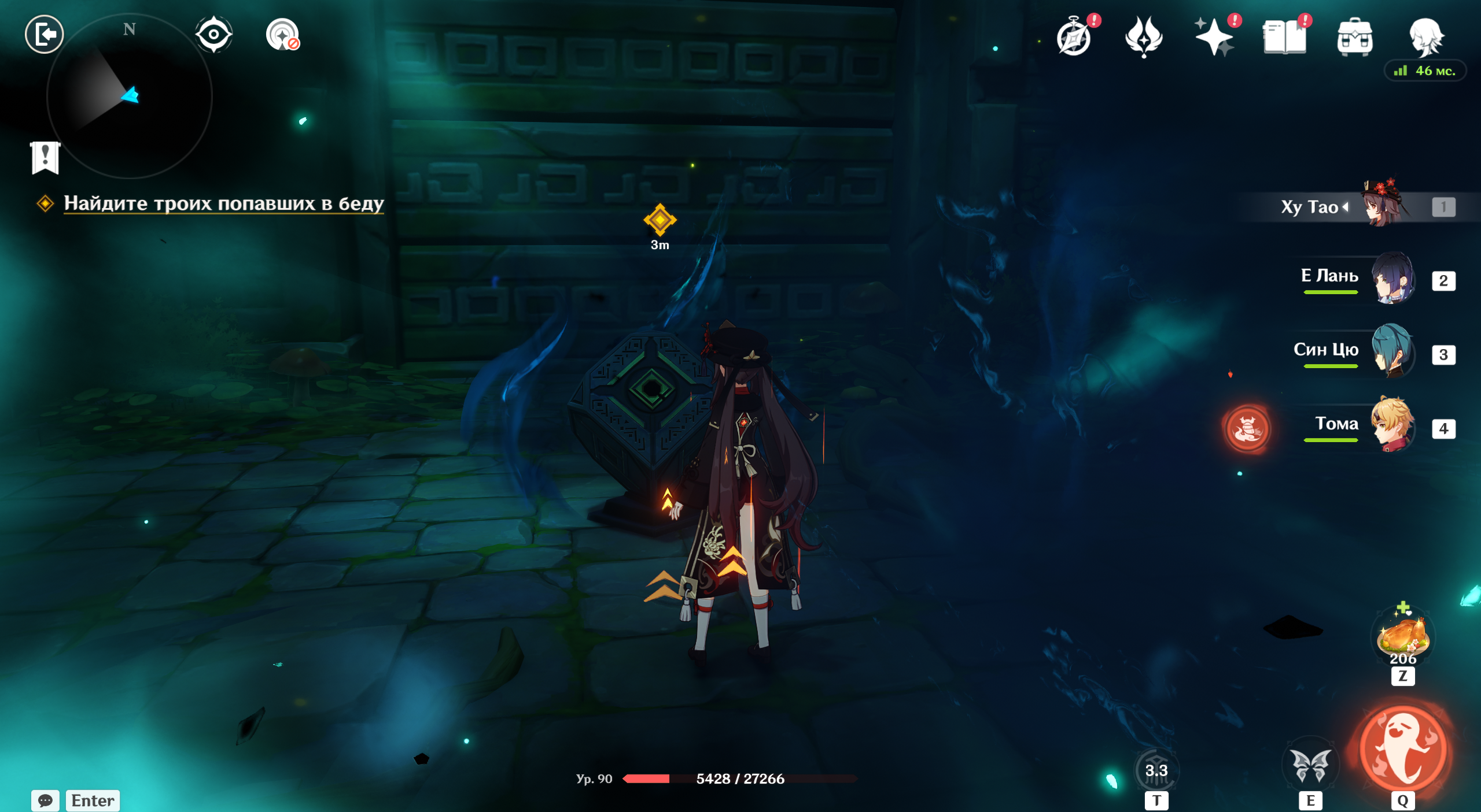 Наконец найдете пропавших. Сяо откроет проход – но перед этим вам предстоит защищать портал от монстров. Отбивайтесь от нападок хиличурлов и дождитесь, пока таймер не истечет.
