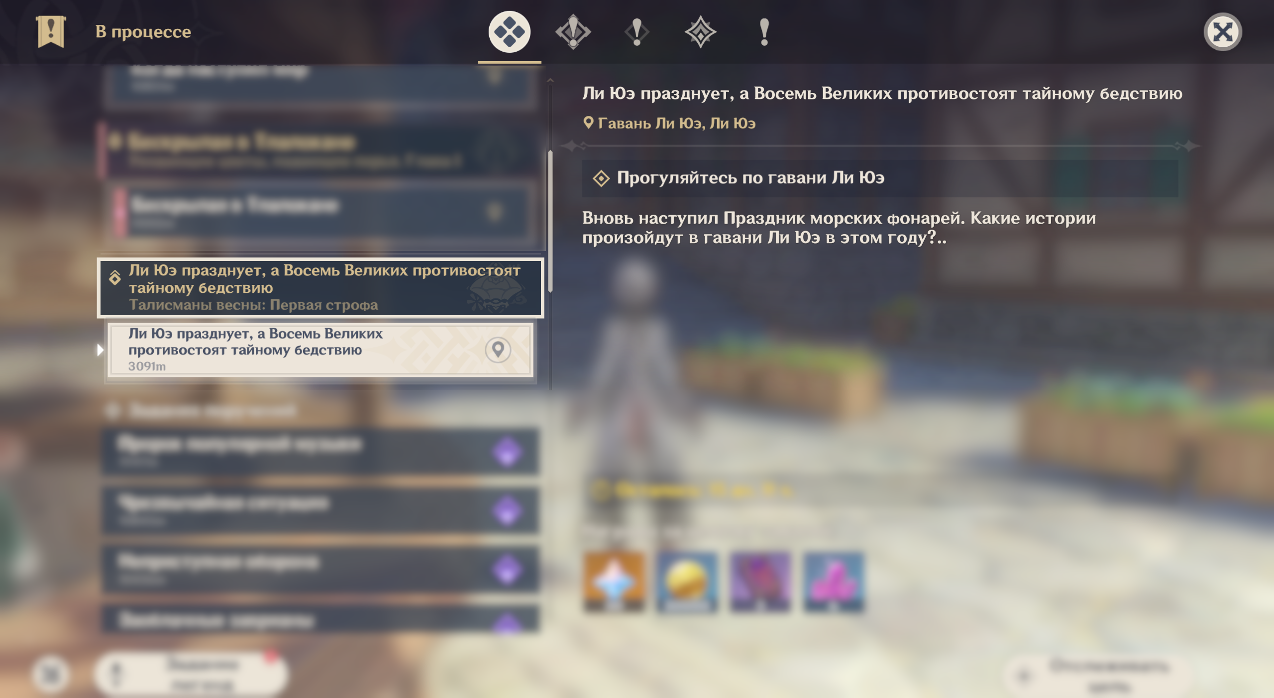 Первый квест серии – «Ли Юэ празднует, а Восемь Великих противостоят тайному бедствию» – вы найдете в журнале заданий.