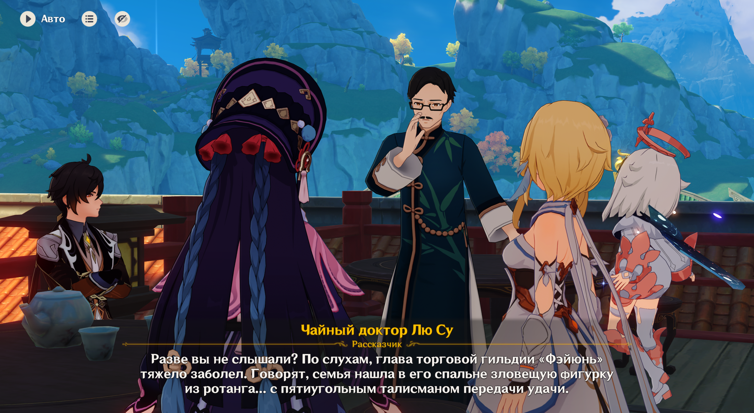 Отправляйтесь в ресторан «Народный выбор». Там увидите Ин Эр и Тимея. Он плохо себя чувствует — все симптомы похоже на те, что вы слышали ранее. Перемещаемся в хижину Бай Чжу, где лекарь расскажет о том самом недуге, что затронул жителей Ли Юэ в последнее время.