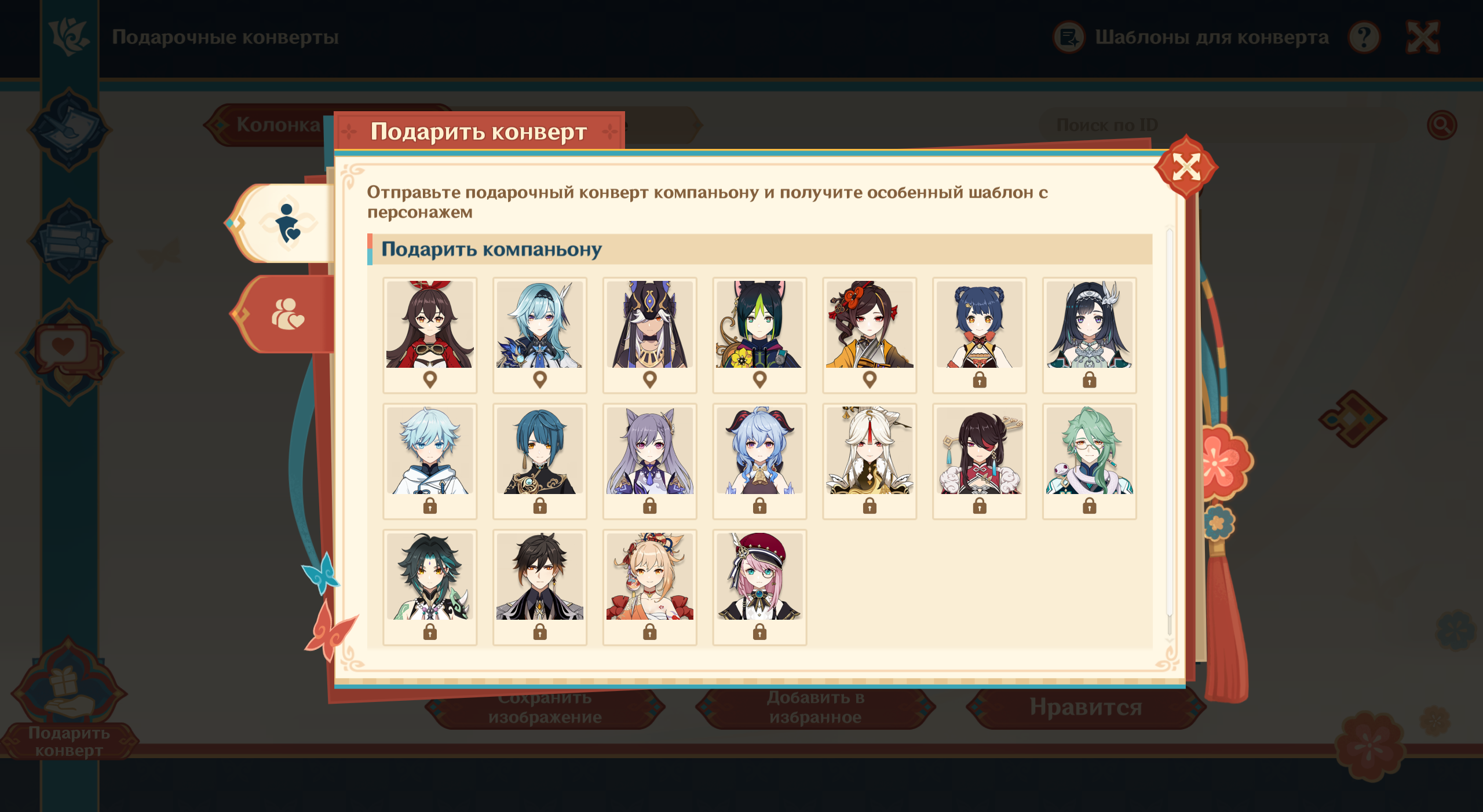 Что еще нужно знать: в меню вы можете сделать еще конверты и отрегулировать их видимость для других игроков. Также тут находятся послания от персонажей и реальных людей. А во вкладке «Подарить конверт» есть опция отследить героя из списка и лично вручить ему подарок.