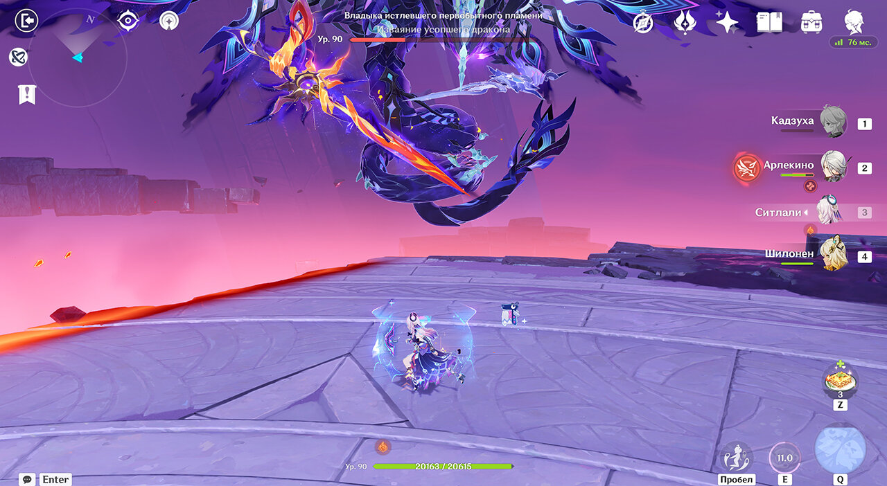 Геймплейно у Владыки есть только одна «сложная» фаза, для которой понадобятся особые персонажи – герои Натлана. В остальном можно брать любую команду для выживания и запастись едой для воскрешения, если не получится сбить заряд. Чтобы одолеть этого босса, стоит знать его атаки.