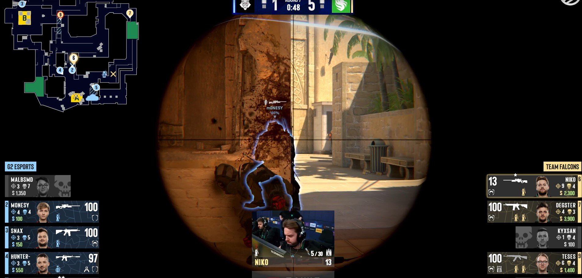 Матч G2 – Falcons должен был продолжить драму: первая встреча Нико и Монеси в разных командах – и сразу игра на вылет.