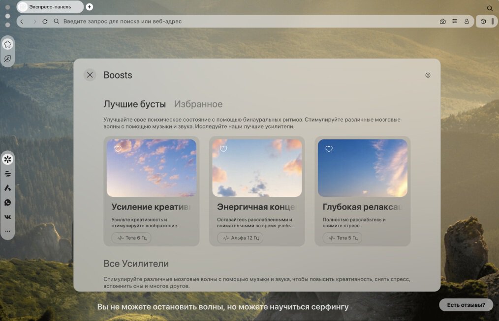 • Бусты. В Opera Air есть коллекция звуков на разных частотах, которые «повысят творческий потенциал, снимут стресс и улучшат концентрацию».