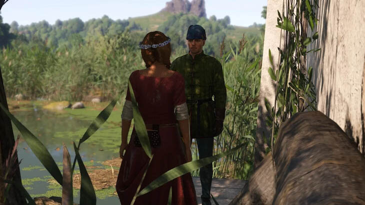 Найдите Сватью в розовом наряде у повозки перед сараем, на краю танцевальной площадки. Используйте реплику, основанную на харизме: «Даже сын бейлифа не избежит наказания». В свадебном наряде этот вариант должен сработать наверняка. Спросите о мече, и Сватья признается, что бросил его в пруд.