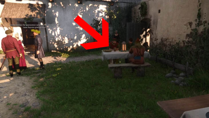 В дворике за столом расположилась группа мужчин из Моравии, и хотя выбор диалога с ними не повлияет на исход, вам предстоит добыть для них особый напиток. Моравская наливка хранится в охраняемом погребе, вход в который находится в углу гостевой зоны.