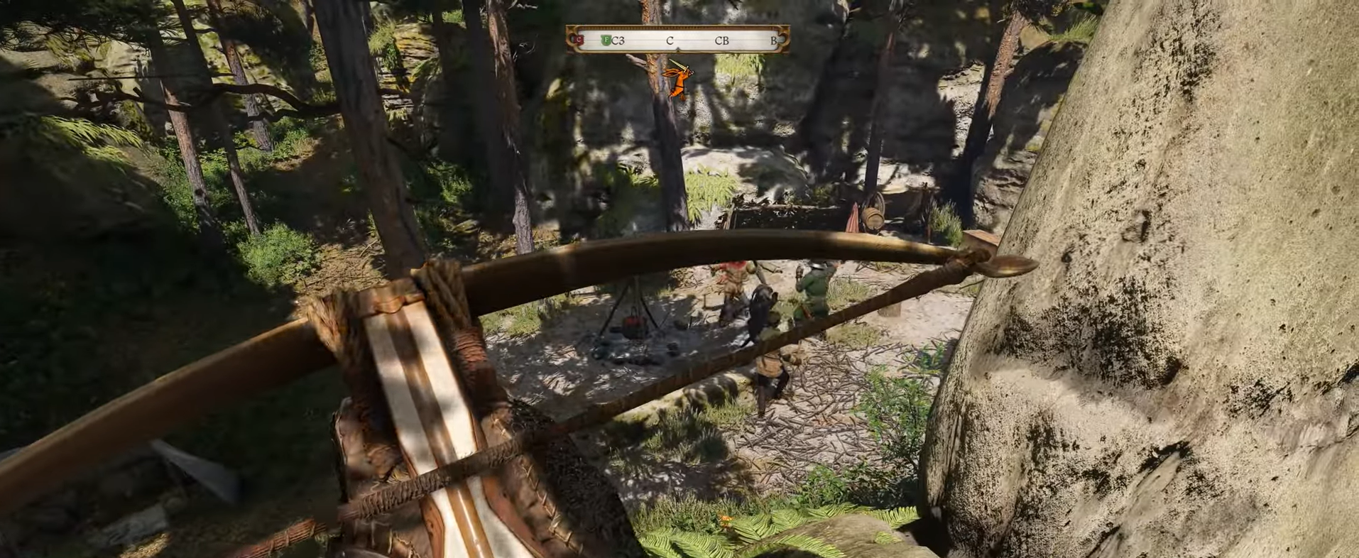 Следуя дальше за паном и сотником, вы услышите вдалеке какие-то голоса. Вам предложат разведать лагерь бандитов. Осторожно подкрадитесь к лагерю, чтобы вас не заметили, оцените ситуацию и вернитесь с докладом к пану Семину.