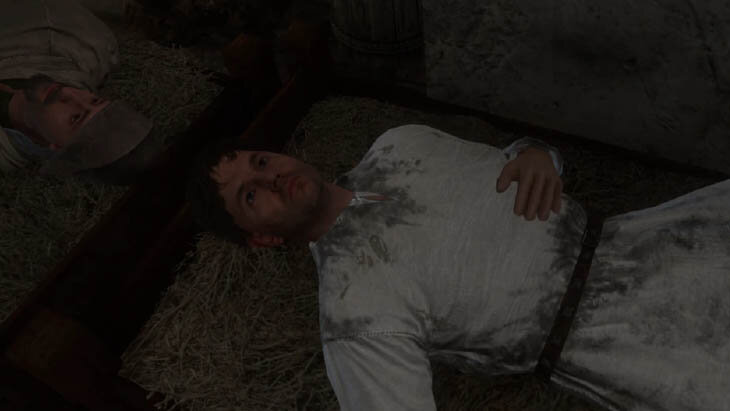 Начните с разговора с пациентом в лазарете. Затем найдите Йоханку, которая принимает только в дневное время, и выберите в диалоге вопрос «Что с человеком, у которого перевязана нога?»