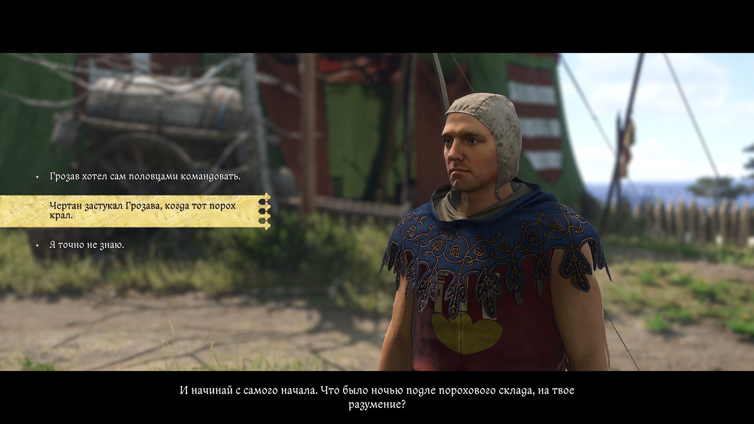 При осмотре тела Чертана вы обнаружите, что его отравили ядом «Поцелуй смерти». Прочитайте книгу ядов (в сундуке на легком уровне взлома) и с этим знанием осмотрите палатки, там будут все ингредиенты для яда. Так у вас возникнет картина произошедшего – убийца (Грозав) был застукан Чертаном на месте преступления. За это знание Чертан поплатился жизнью. Муса действительно не при чем, он был с Индро и Катцем весь вечер, но просто так на слово никто не поверит.