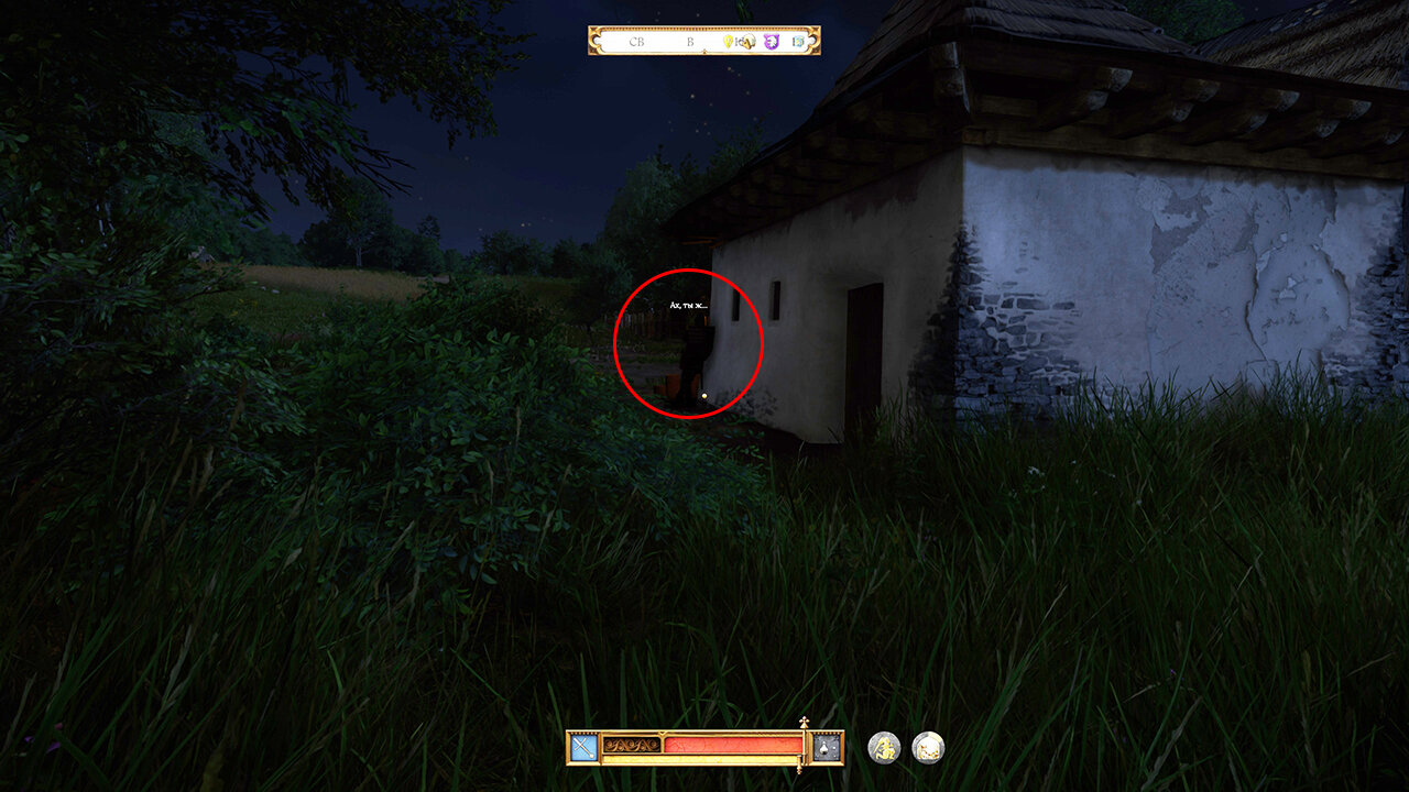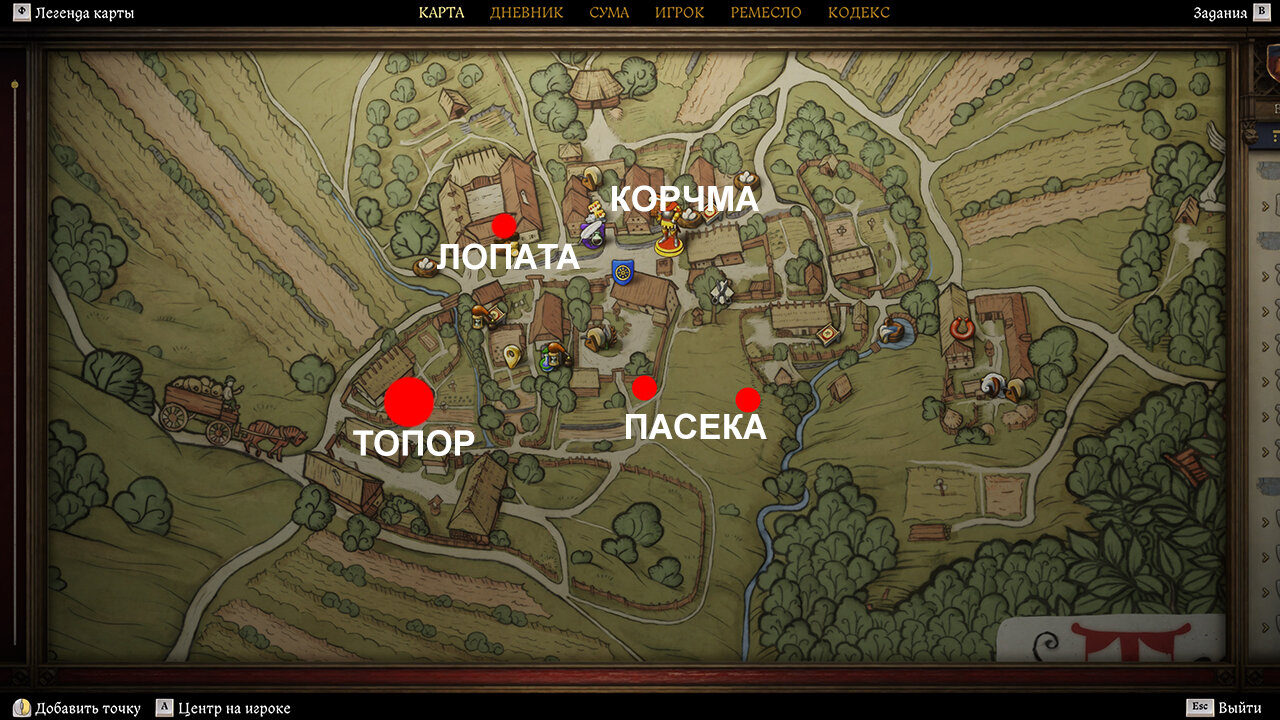 Первым делом нужно пойти на пасеку и вскрыть все ульи – это не считается кражей. Мед, кстати, очень хорошо утоляет голод, так что можно возвращаться в это место, когда главный герой проголодается. Собранный мед нужно продать в корчме хозяйке или служанкам, а потом пойти в соседний дом с синей вывеской и купить у торговца лопату. Не уходите далеко от этого места – в сарае лежит бесплатный топор из Скалицы. Пока вы не выполнили квест с обучением у кузнеца Радована и не получили бесплатный меч, можно пользоваться этим топором.