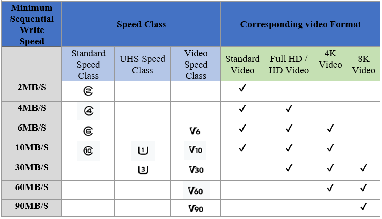 • Класс скорости видео от V6 до V90. Почему важен этот пункт? MicroSD-карты изначально были предназначены для хранения фото и видео. И в данном случае мы дополнительно можем выявить уровень производительности карточки – он влияет на скорость чтения видео.