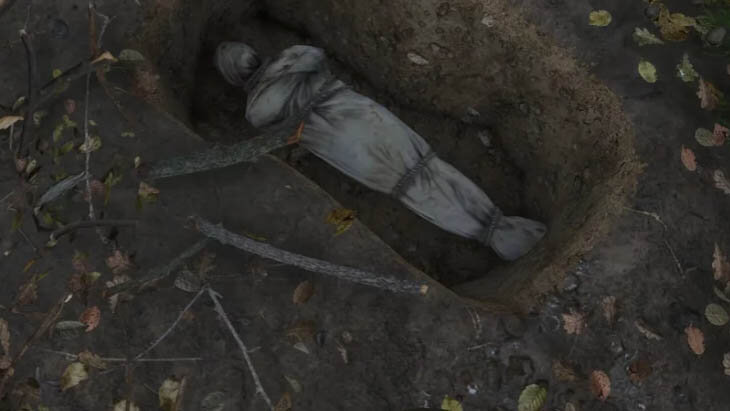 На второй точке раскопок вы найдете тело с ценными предметами: