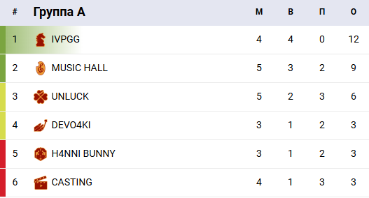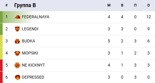 В группе В следующая обстановка: MOPSIKI и NE KICKNYT также имеют по три очка и будут бороться за проход в плей-офф.