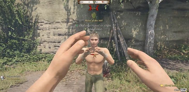 Для запуска квеста надо найти наемника Хенсела и поговорить с ним. В разговоре выберите «Не начать ли нам снова». Если оппонент согласен, то вы переместитесь на арену для рукопашного боя.