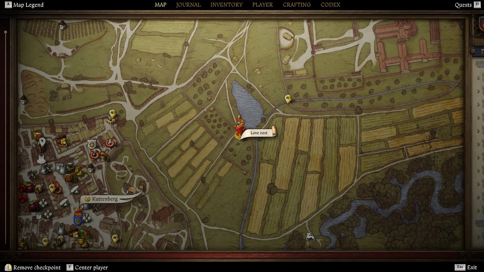 Карту сокровищ можно обнаружить рядом с открытой лестницей у одной из внешних стен монастыря Седлец (Sedletz Monastery). Пожалуй, это единственная карта, где все надписи видны отчетливо и все описано подробно. На ней можно увидеть пруд, большое дерево, стоящее у монастыря, и невысокое здание. Вам следует переправиться через пруд, найти здание, которое на карте обозначено как «Гнездо Любви» (Love Nest). Внутри найдете клад: