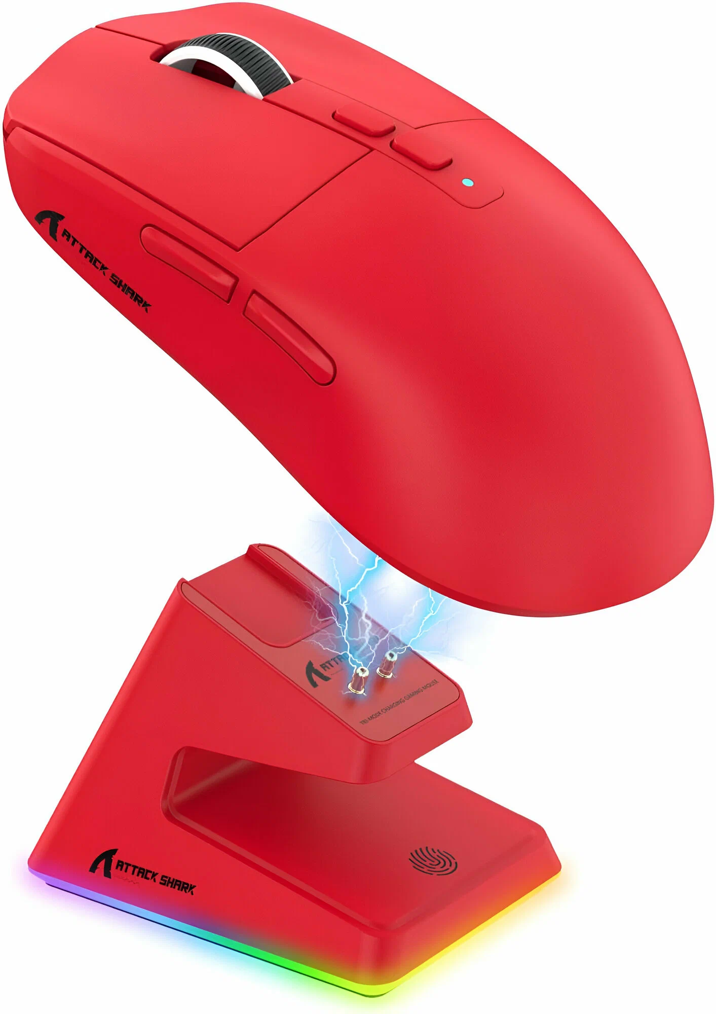 Самая дорогая мышь в нашей подборке выполнена в красном цвете. Сама мышь не обладает подсветкой. Но она есть на док-станции для зарядки.