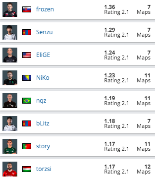 FaZe Clan тоже выглядят гораздо увереннее, чем в начале года. Команда взяла реванш над Eternal Fire за четвертьфинал в Катовице и первой прошла в плей-офф. А frozen стал лучшим игроком этапа (EliGE занимает почётное 3-е место).
