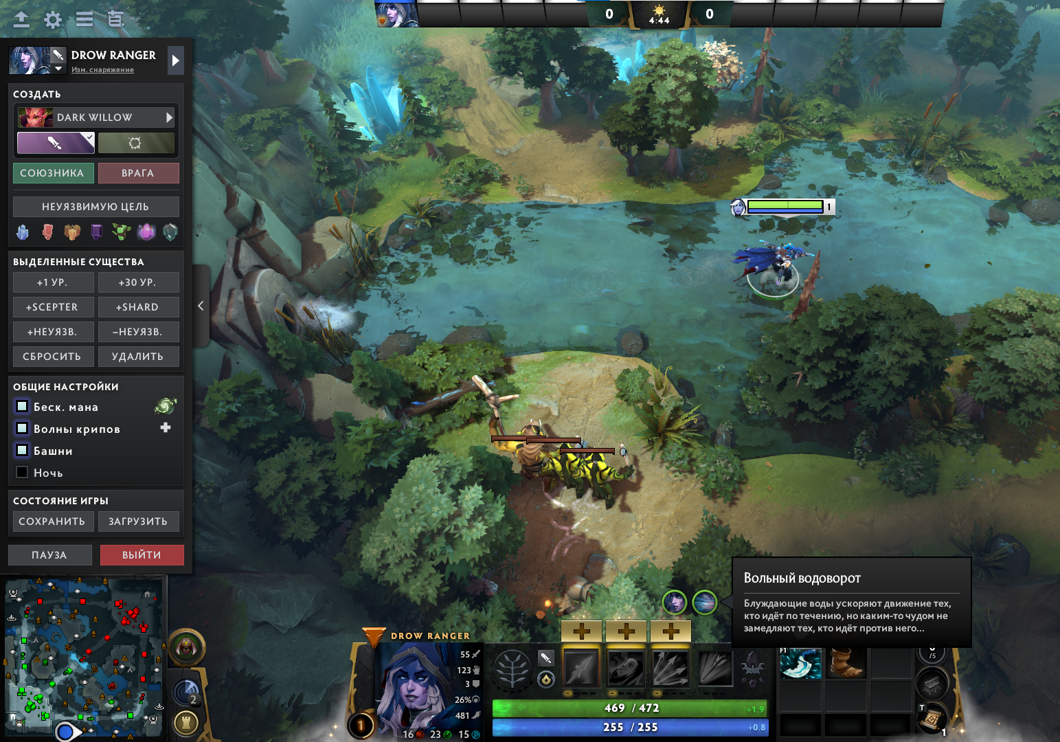 ● У ручьев есть течение, которое начинается возле T3 вышек (прямо перед средним лагерем крипов) и идет до T1 вышек (бывшая локация Парных Порталов).